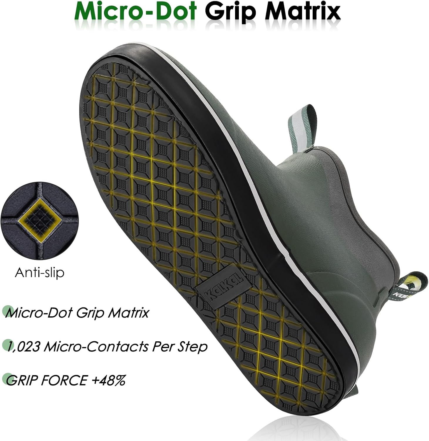 - ๐๐Slip-Resistant Outsole: kalkal deck boots for men with non-slip tread pattern provide a secure grip on wet and slippery surfaces, Those menโs rubber boots ensure stability on rainy days or waterlogged decks, also nice fishing boots for men