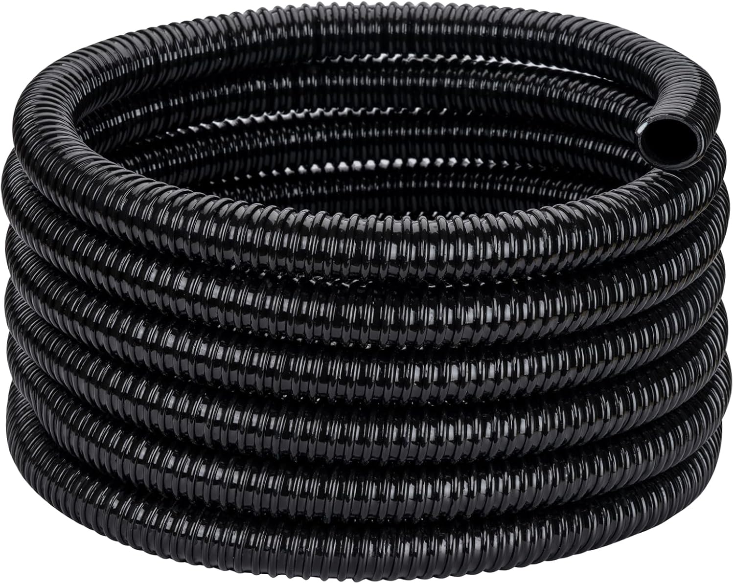 1/2' 10ft Black Corrugated Flexible Reinforced PVC Pond Tube Sump Pump Hose, Non-toxic & Kinkproof (10 ft, 1/2" ID)