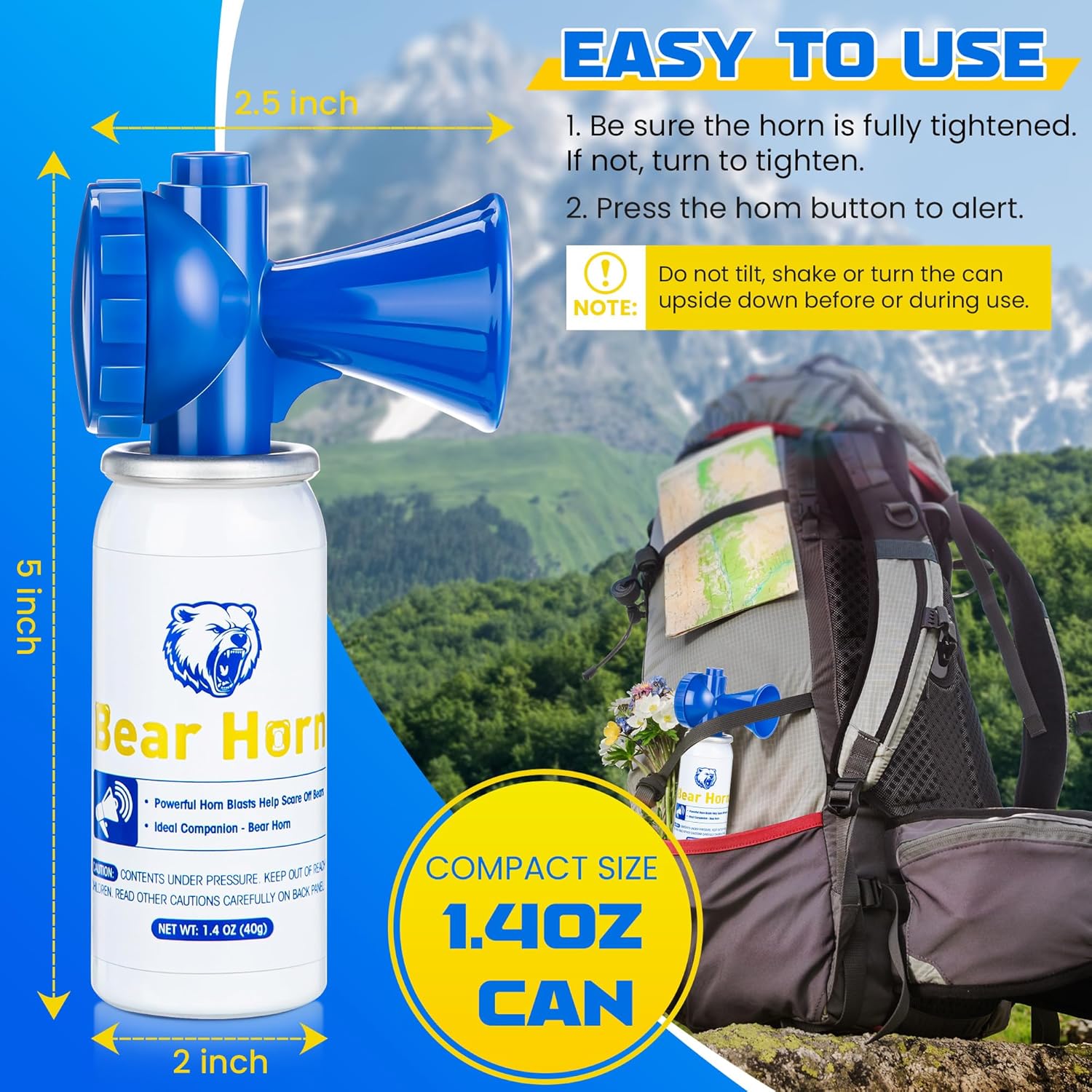 - Powerful Sound Heard from 1/2 Mile Away: Emitting a 120dB loud and attention grabbing sound, this bear air horn can be heard from a 1/2 mile away, ensuring 're heard in any situation; It is an essential addition to every wilderness hiker companion