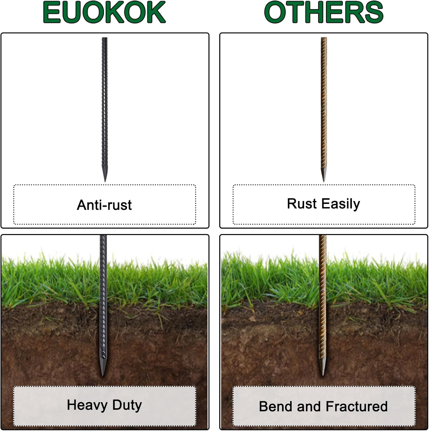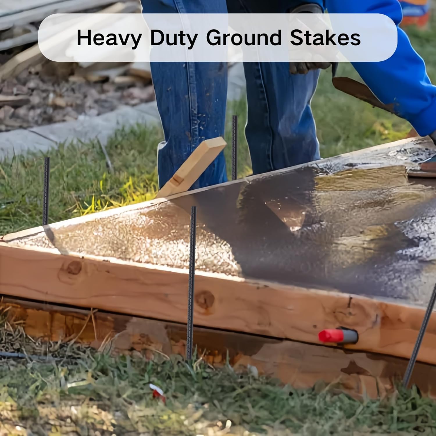 - Heavy Duty Ground Stakes: Our rebar spikes are crafted from high quality solid steel and coated with black coat, making them resistant to harsh weather for long-lasting performance. The black coating allows for use in all types of ground, even wet soils, ensuring durability for years to come