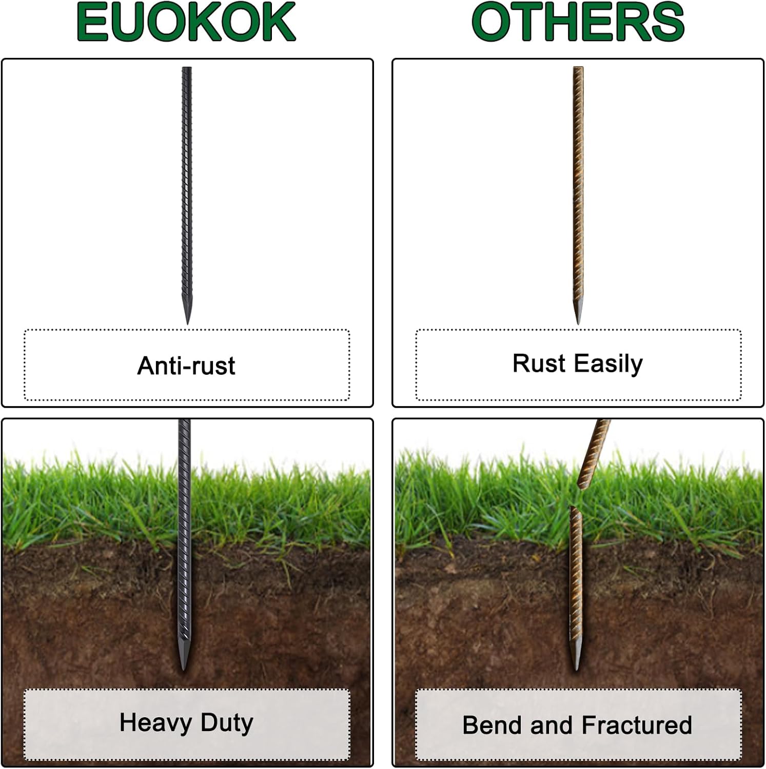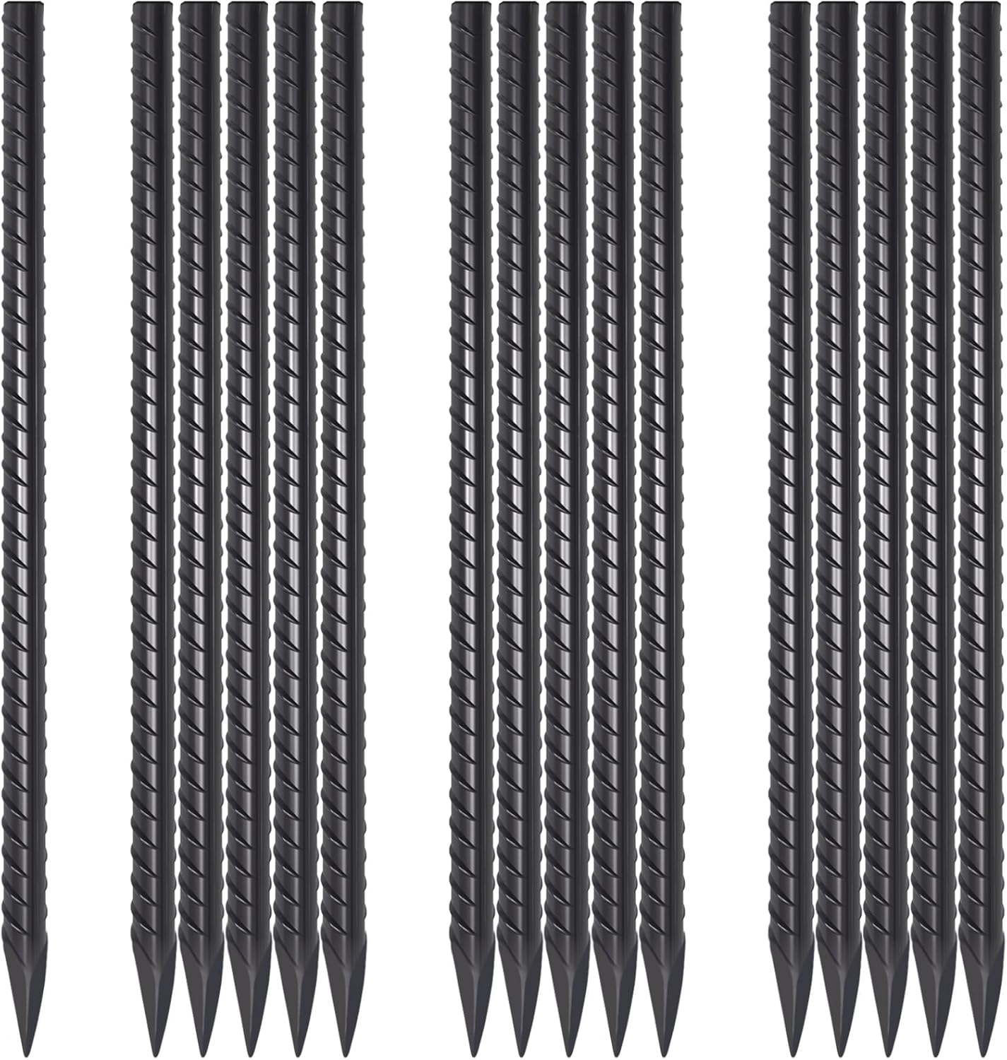 - Rebar Spikes: 16 inch rebar ground stakes are crafted from high quality solid steel and applied black coat, withstanding harsh weather and resist broken for long lasting performance. Black coating for all types ground even in wet soils for years