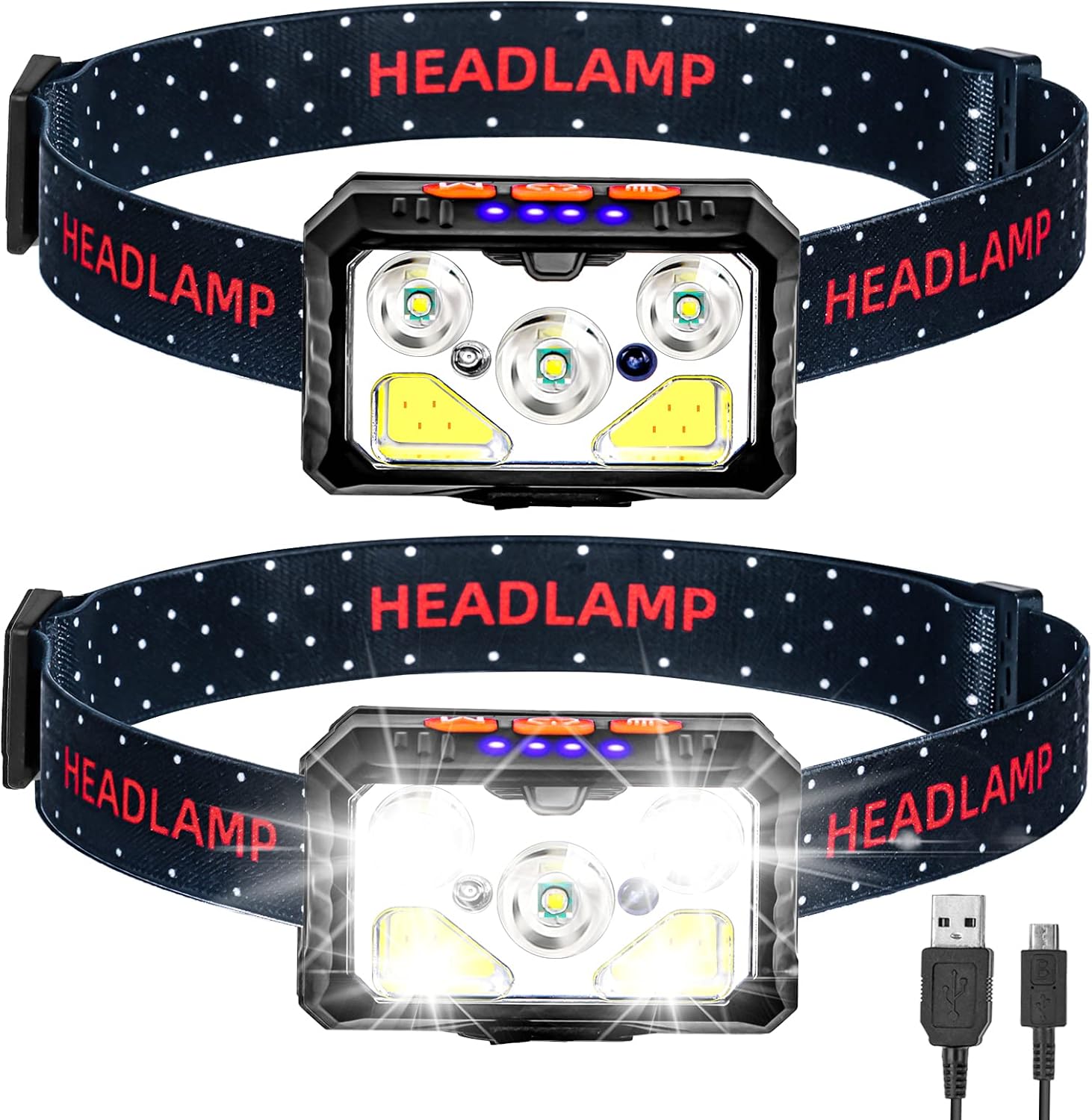 Kitness 2 Pack Digits Sensor Headlamp 6 Light Mode LED Rechargeable Headlight 1100 Lumens USB Head Lamp Flashlight Waterproof Headlamps with Motion Sensor for Outdoors