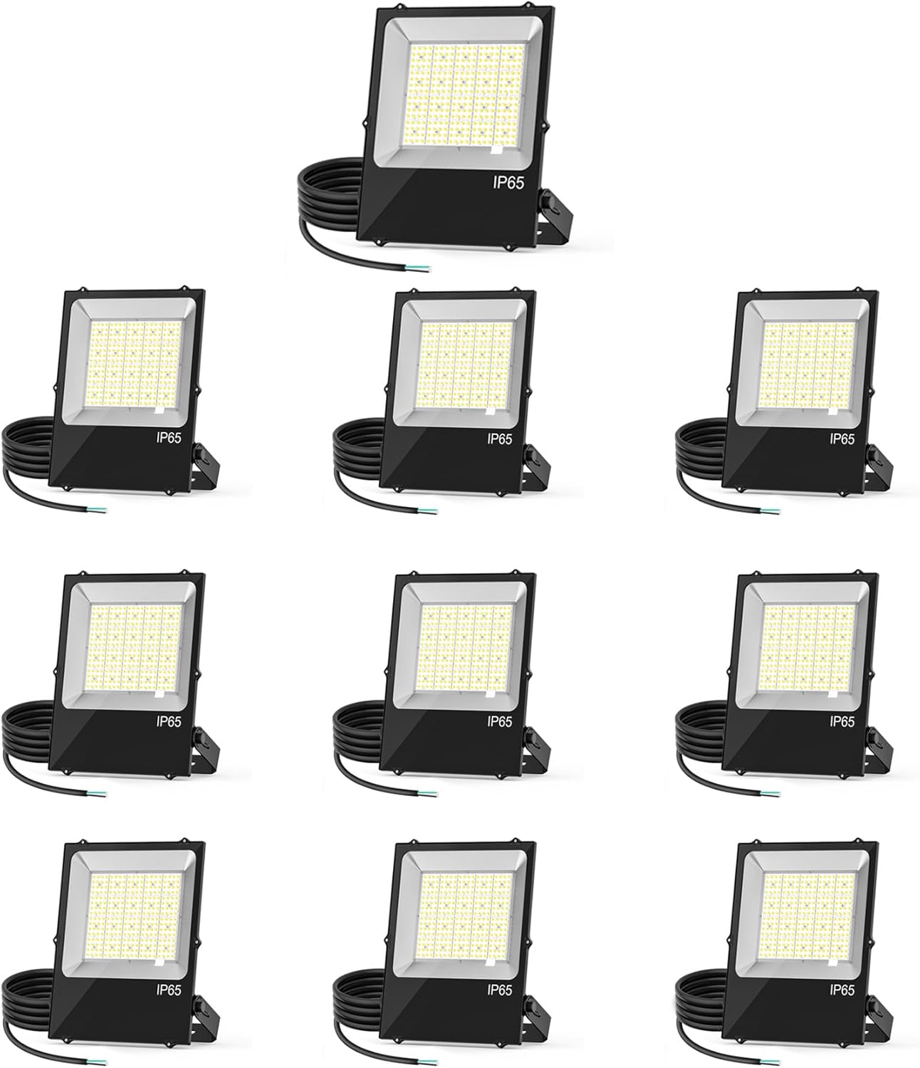 10 Pack LED Flood Light Fixture 300W 36000LM ETL Listed 5000K Outdoor Floodlight Security Lighting IP65 Waterproof for Parking Lot Sports Fields Billboard Arena Yard Garage AC100-277V