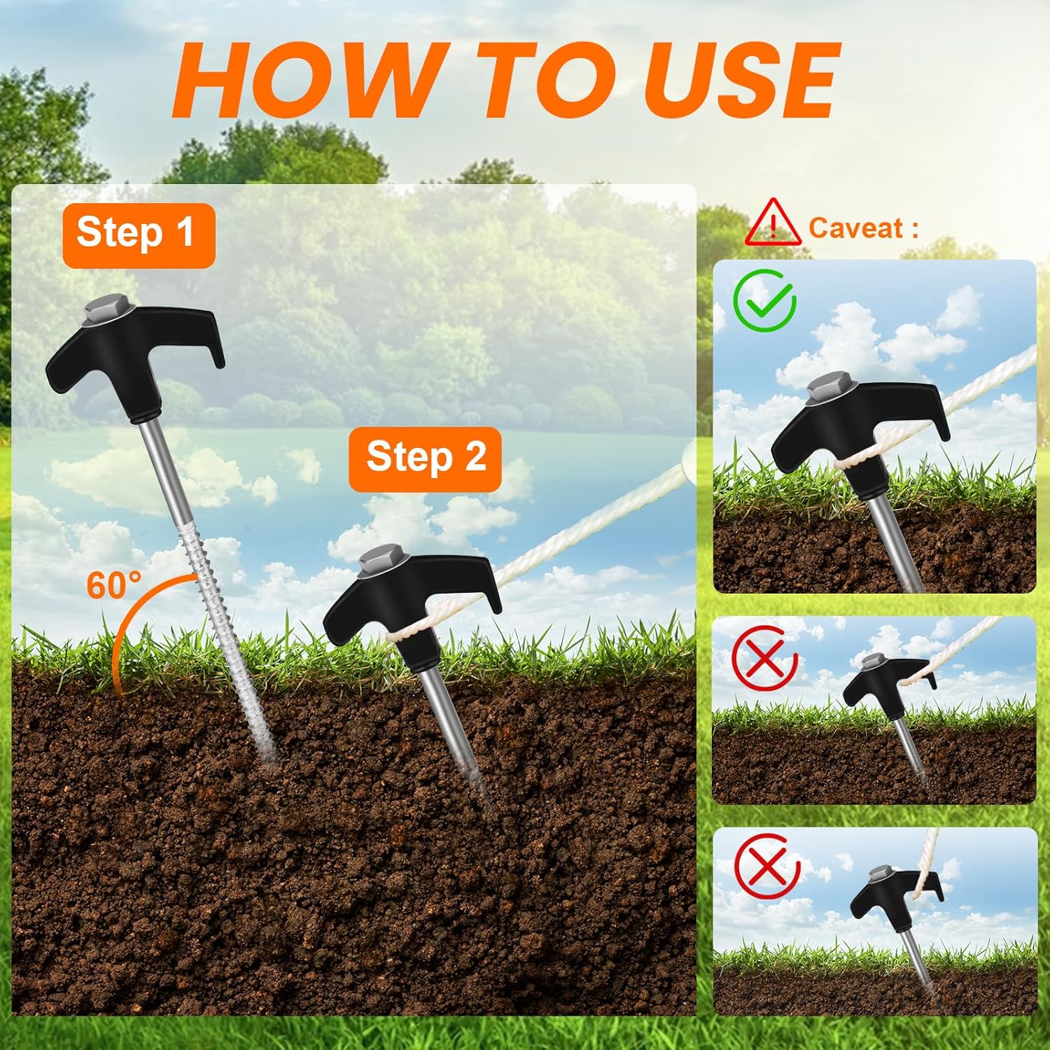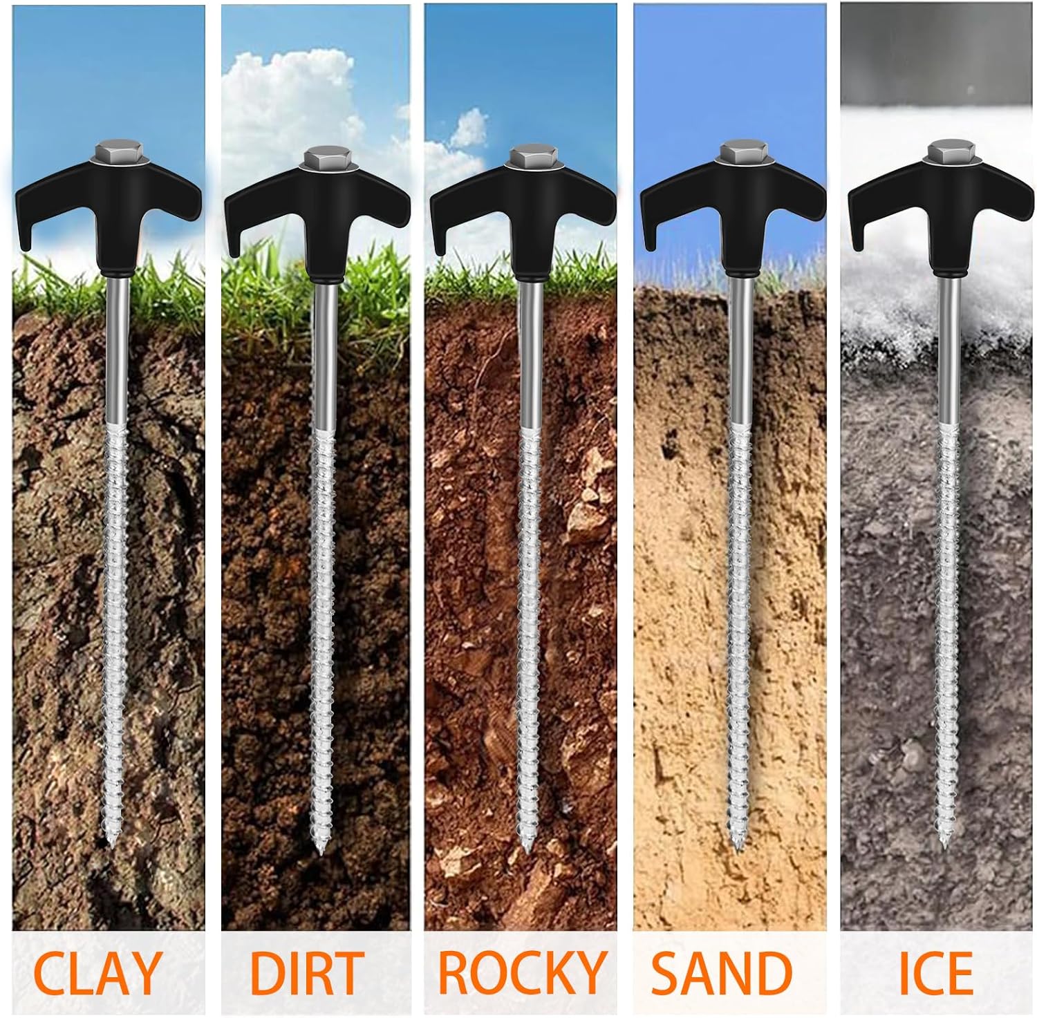 - Convenient and Practical: Our tent stakes have pointed tips that are easy to insert into hard soil, and the spiral design offers a stronger grip; With the help of a cordless drill or impact driver, these stakes will have your tents, canopy, awning or tarps grasp the ground more stable