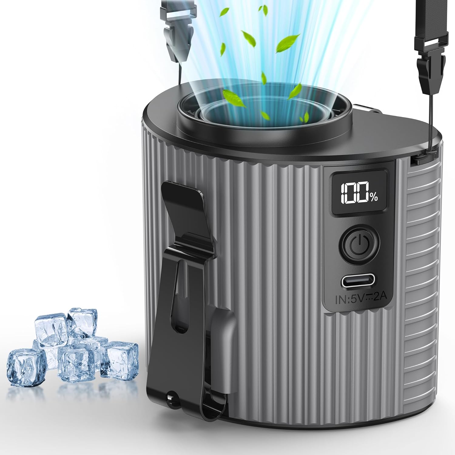 KITWLEMEN Portable Waist Fan - Personal Clip on Belt Fan, 5 Speeds 20H Cooling, Rechargeable Battery Operated, Wearable with Lanyard for Camping, Travel, Jobsite (Gray)