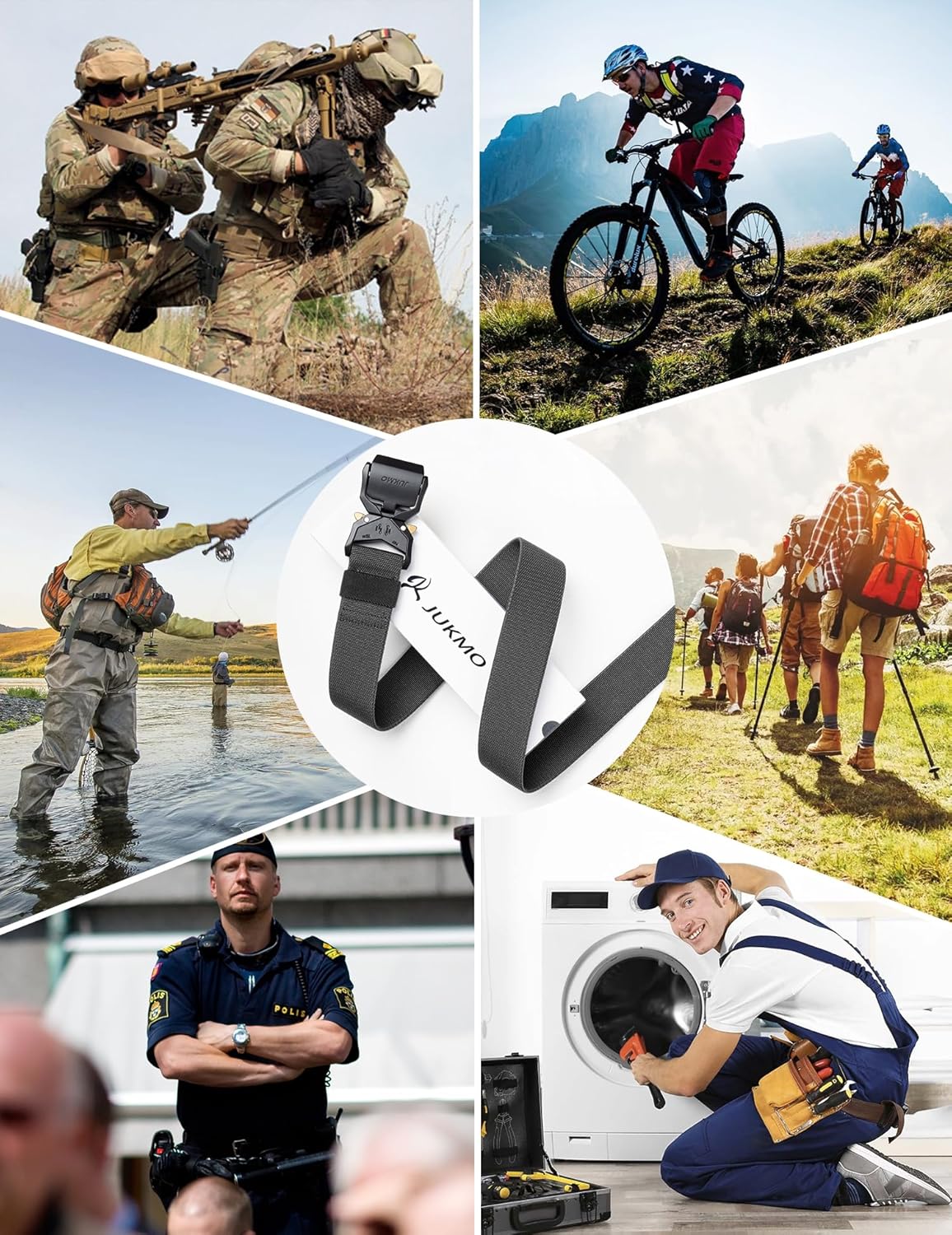 JUKMO Tactical Belt, Military Hiking Rigger 1.5" Nylon Web Work Belt with Heavy Duty Quick Release Buckle