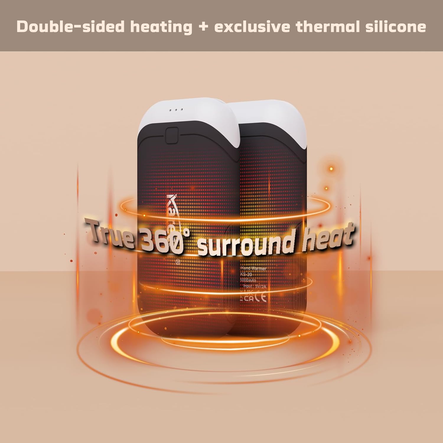 - Innovation Heat-Conducting Silicone Handwarmer: Our electric hand warmer features a thermally conductive silicone sleeve that fully encapsulates the dual-sided aluminum heating plate. This synergistic design maximizes heat retention, extends usage time, and delivers uniform, gentle warmth across the entire surface. It creates a perfectly even, soft-touch feel while offering scratch resistance, slip prevention, and shock absorption.