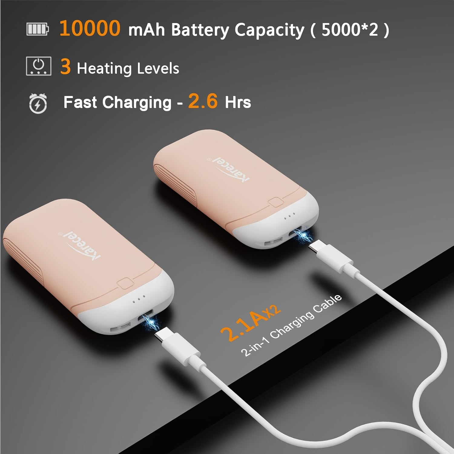Karecel Hand Warmers Rechargeable 2 Pack, 10,000mAh Thermally Conductive Silicone Hand Warmers for 360° Double-Sided Heat, Portable Pocket-Sized USB Electric Handwarmer, Electronic Gifts for Men Women