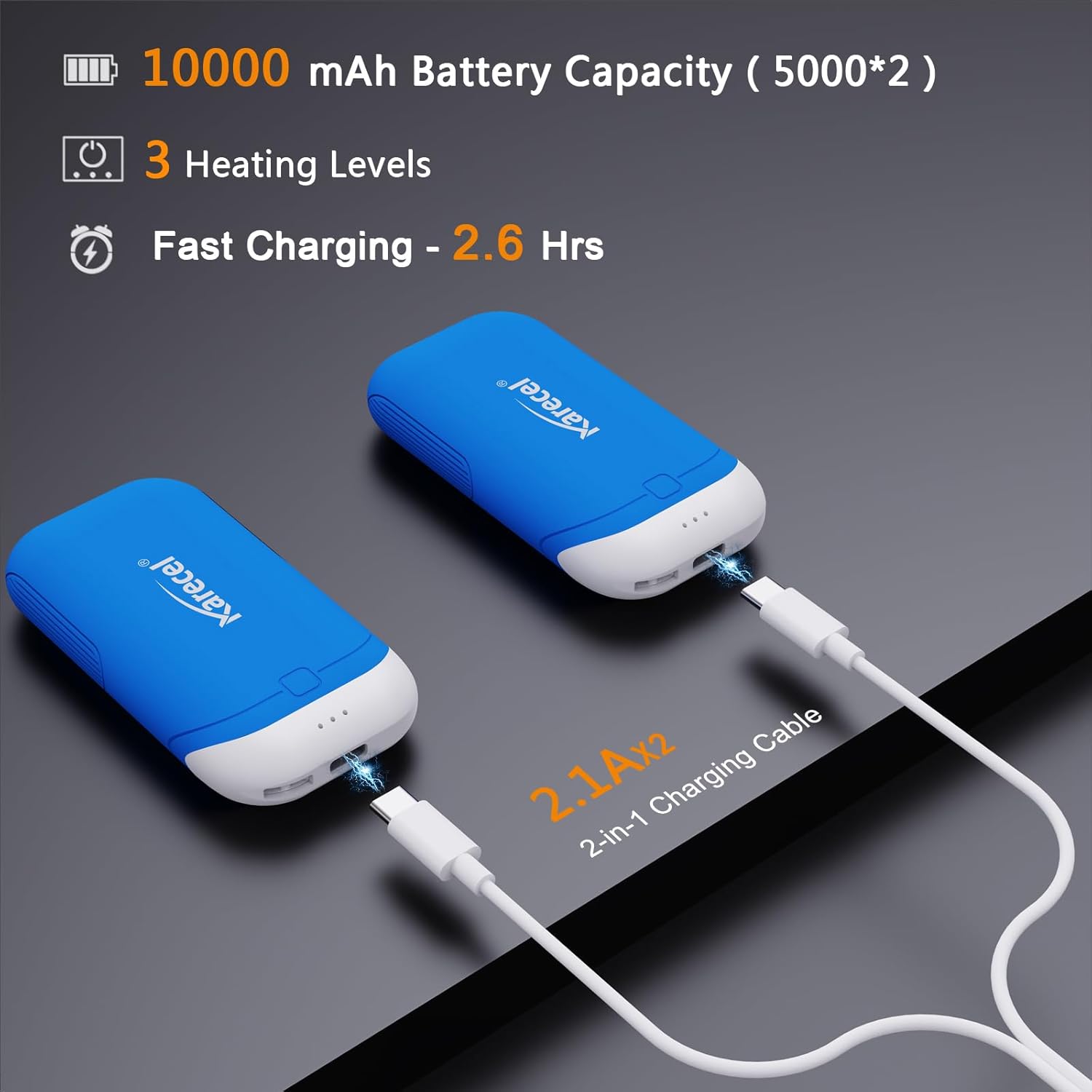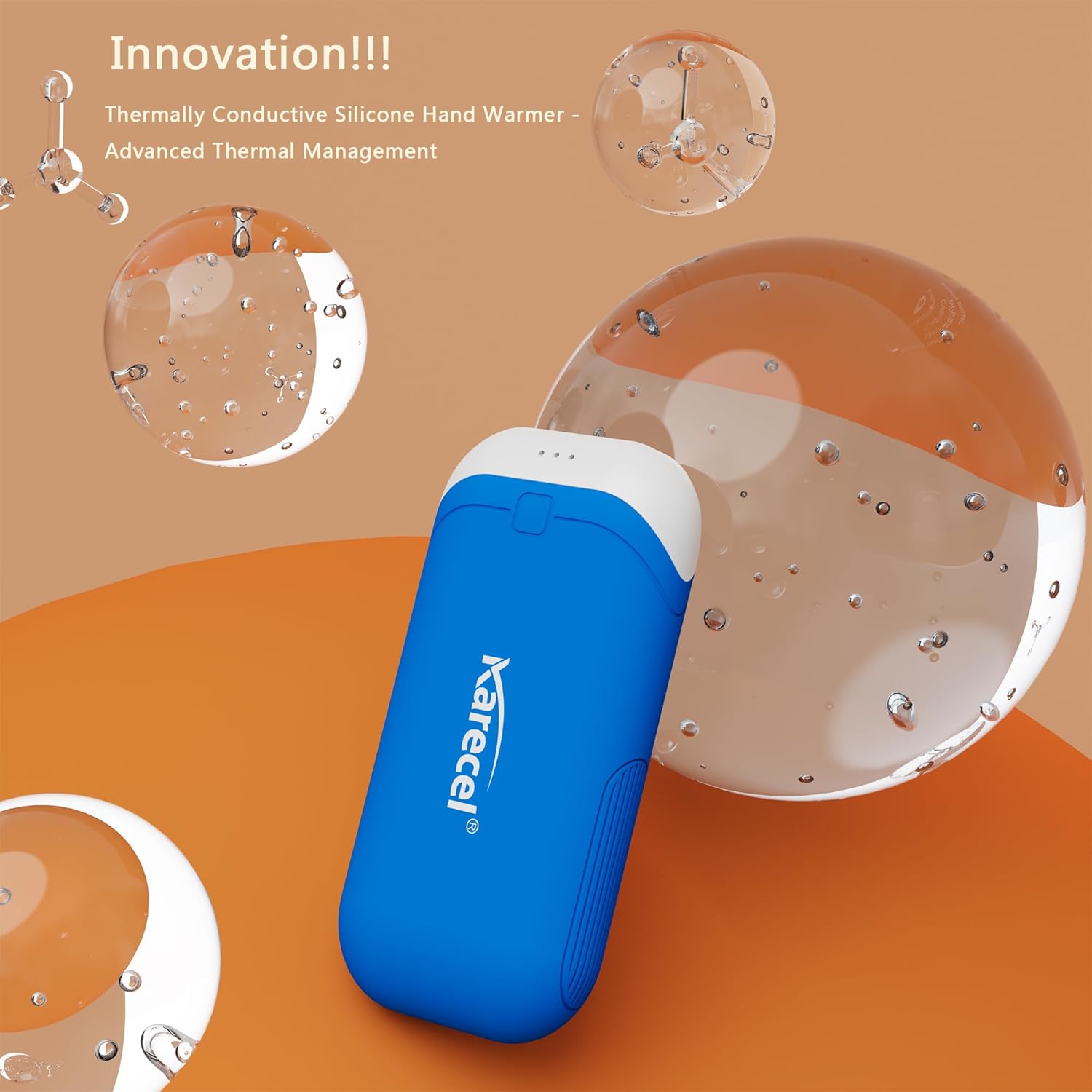 Karecel Hand Warmers Rechargeable 2 Pack, 10,000mAh Thermally Conductive Silicone Hand Warmers for 360° Double-Sided Heat, Portable Pocket-Sized USB Electric Handwarmer, Electronic Gifts for Men Women
