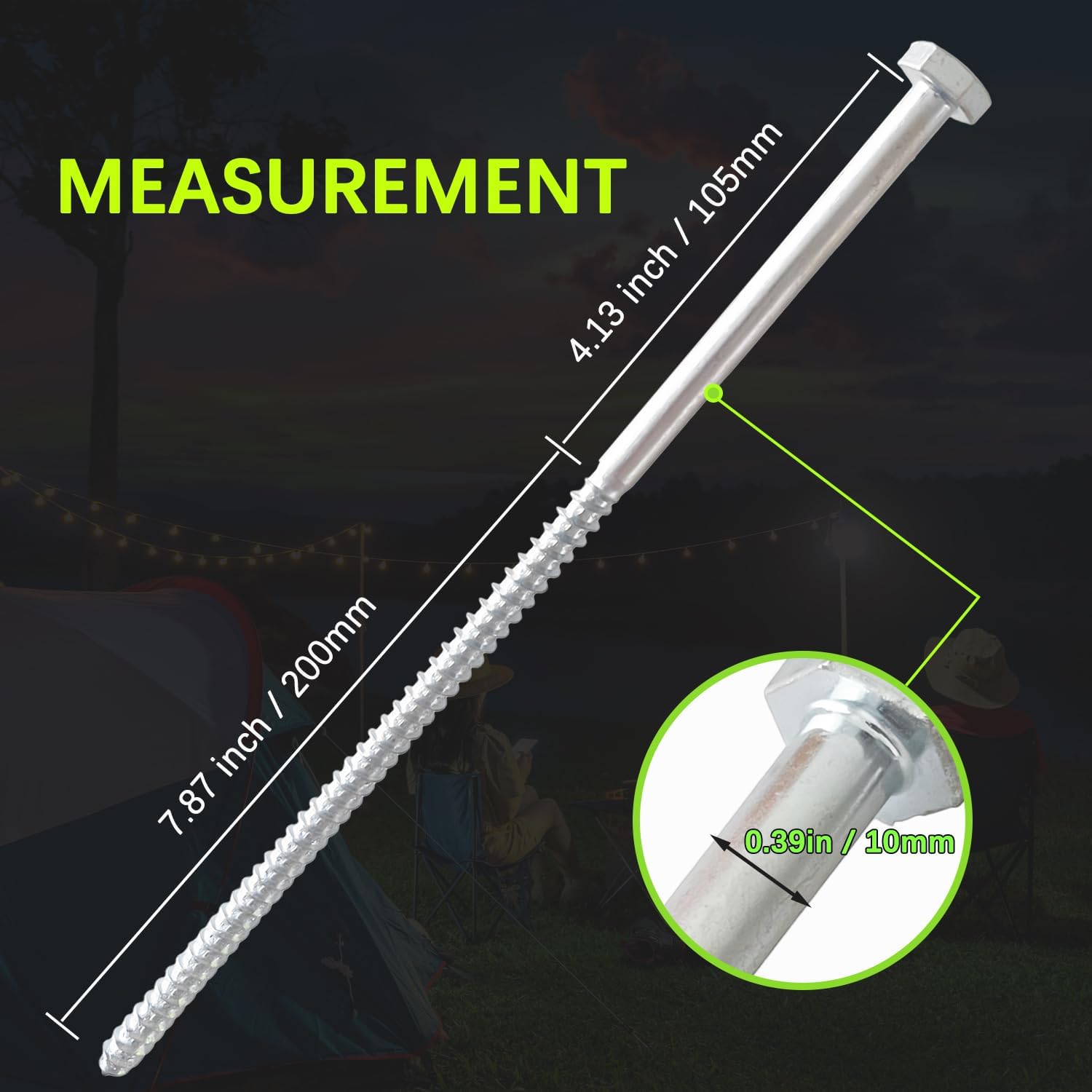 - 【HOT-DIP GALVANIZED STEEL】 - These ground anchors are with heavy-duty hardness, Corrosion resistant, Anti-rust, offering strength and durability, They're capable of withstanding considerable weight and pressure without bending, rusting, or breaking, ideal for tent stakes with the washers and chains in the package. They can endure and resist the rusting effect of sun and rain.