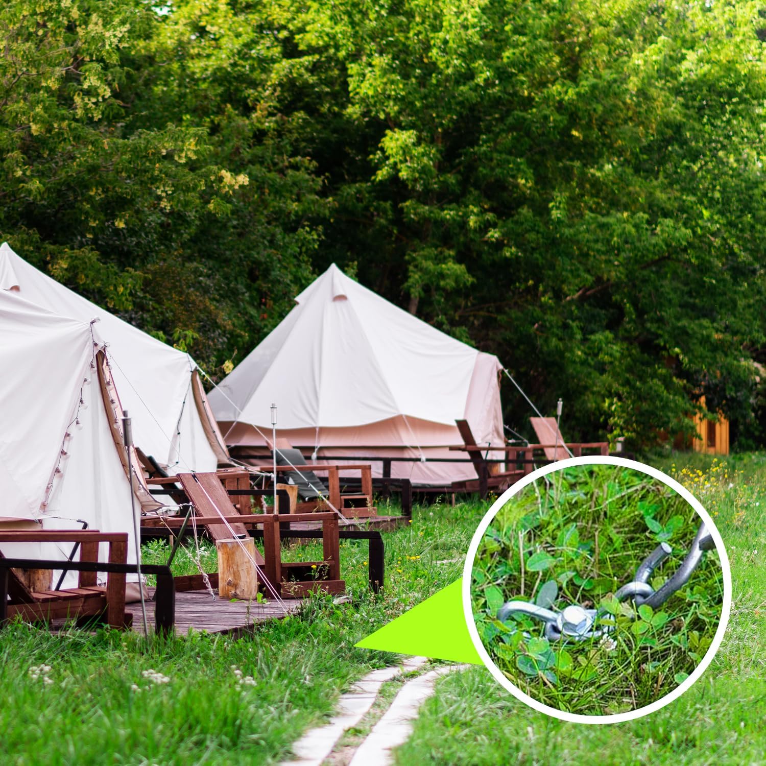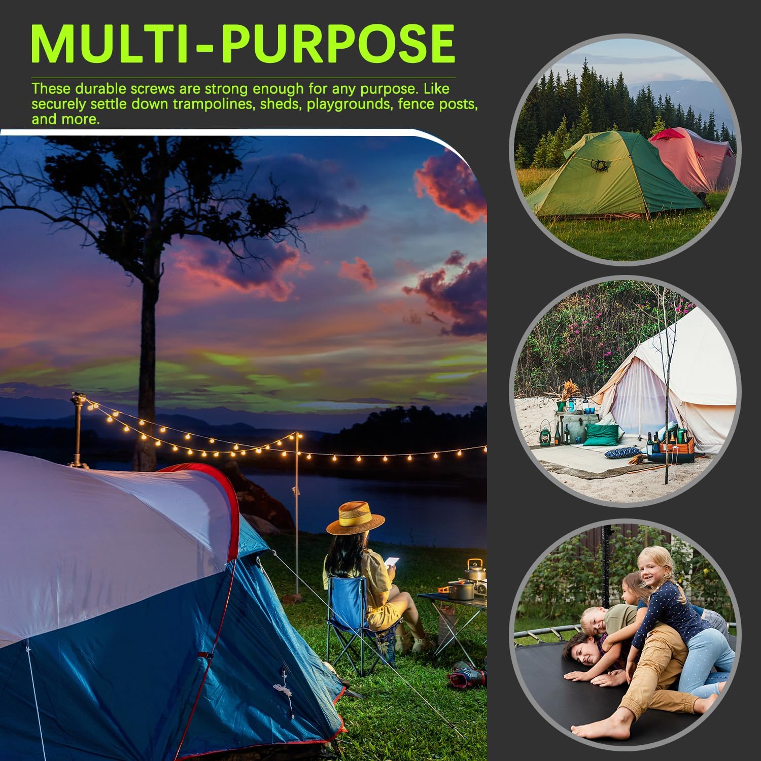 - 【WIDE USE】 - The ground anchor is suitable for objects that are easily affected by wind and rain, the metal tent stack can not only fix tents, canopies, ground covers, garden nets, tarps or landscape decorations, but also ideal for trampolines, play facilities, swings for children choose. Even more so for slides, campers, fences and fence posts, trees, vertical hammock frames, and more.