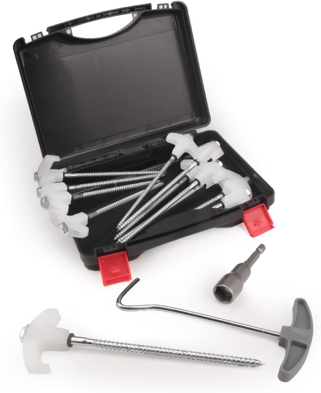 - Include: 12 tent stakes, 1 stake puller, 1 13mm hex drill bit, 1 carrying case for convenient carrying and storage