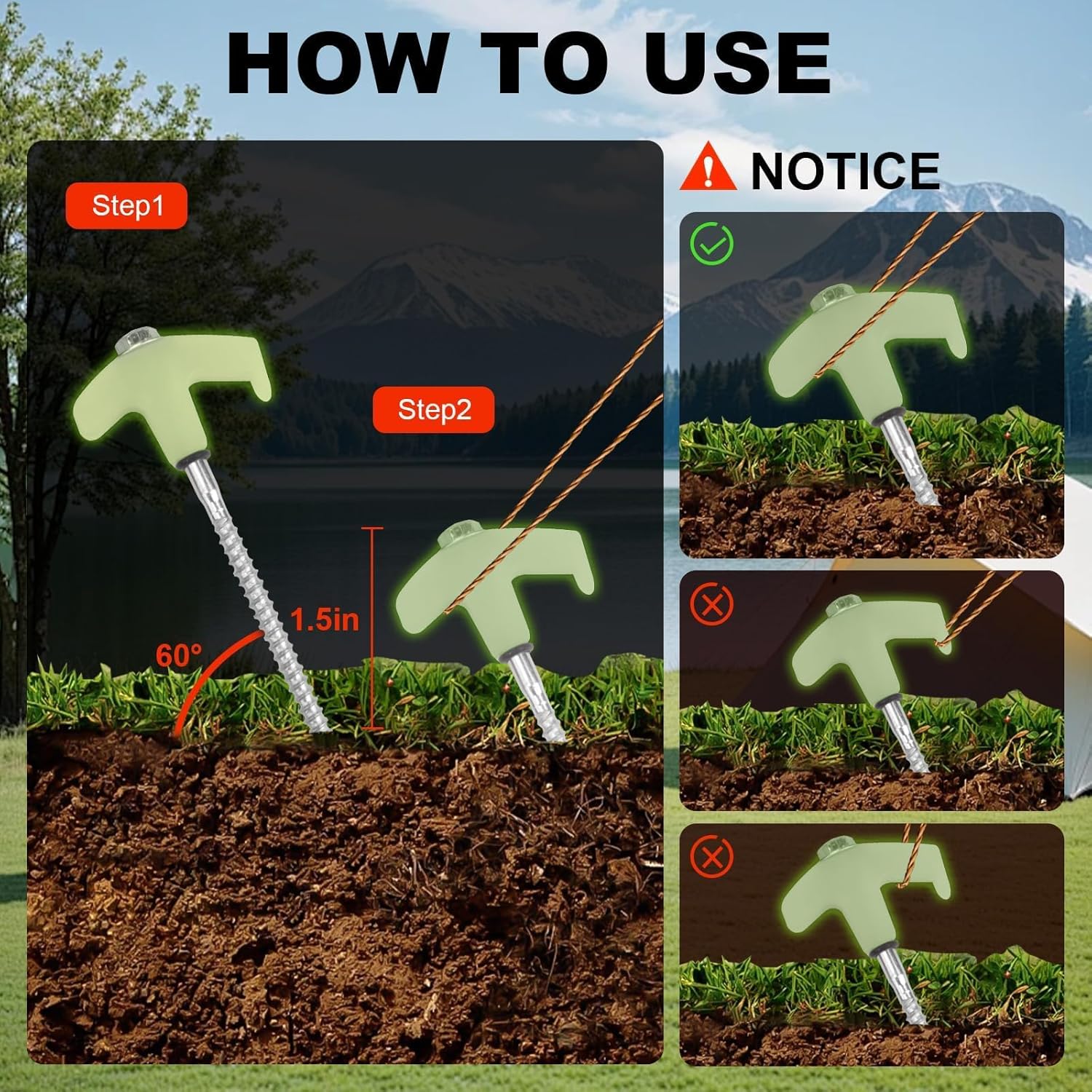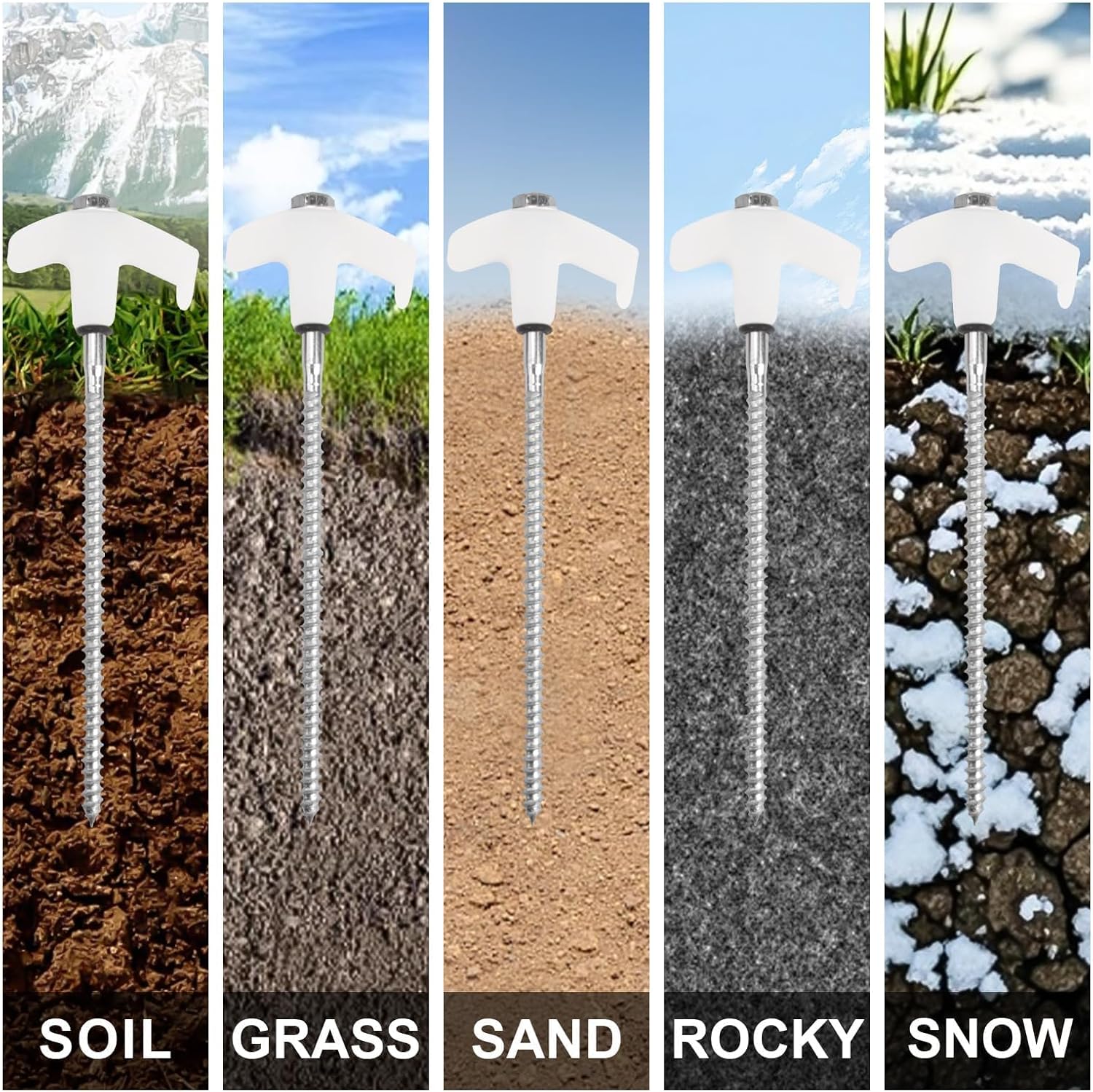 - Effortless Installation: Screw-in design allows you to spend less time setting up and more time enjoying your camping. Simply use a cordless drill or impact driver to secure your tents, canopy, awning, gazebo or tarps in seconds