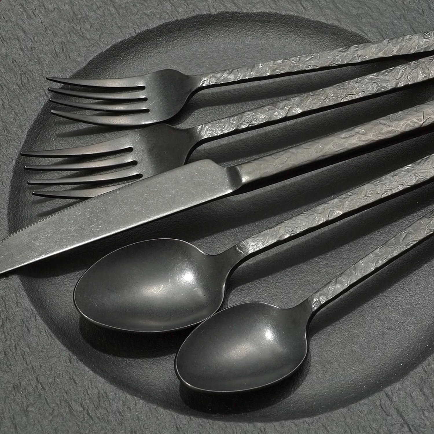 KINGSTONE 40 Pcs Black Hammered Silverware Set for 8, 18/10 Stainless Steel Heavy Duty Flatware Set, Tableware Cutlery Utensil Sets for Home Restaurant Dishwasher Safe