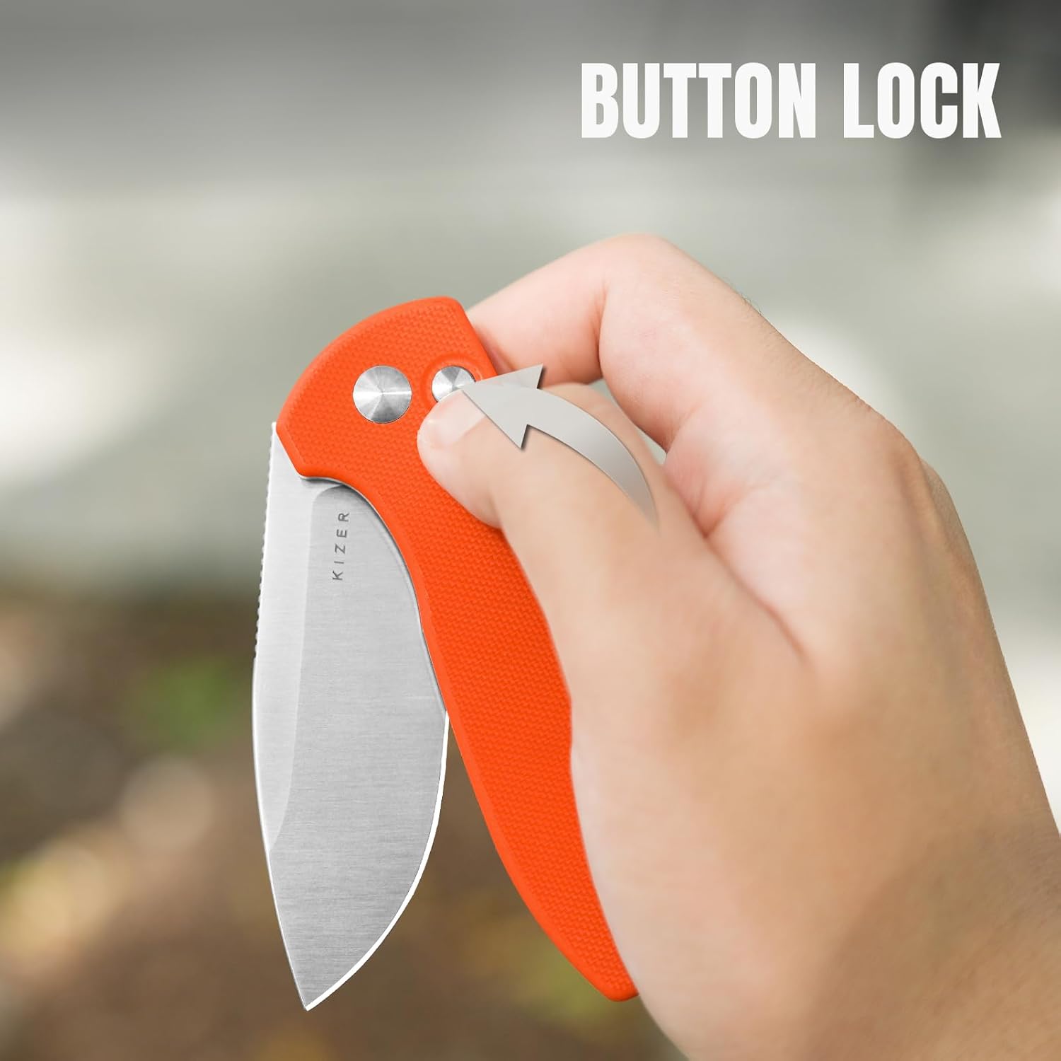 - Daily Adventure-ready Knife: Kizer Amicus pocket knife is made from Nitro V steel with satin blade, offering excellent toughness and a good balance between aesthetics and functionality.