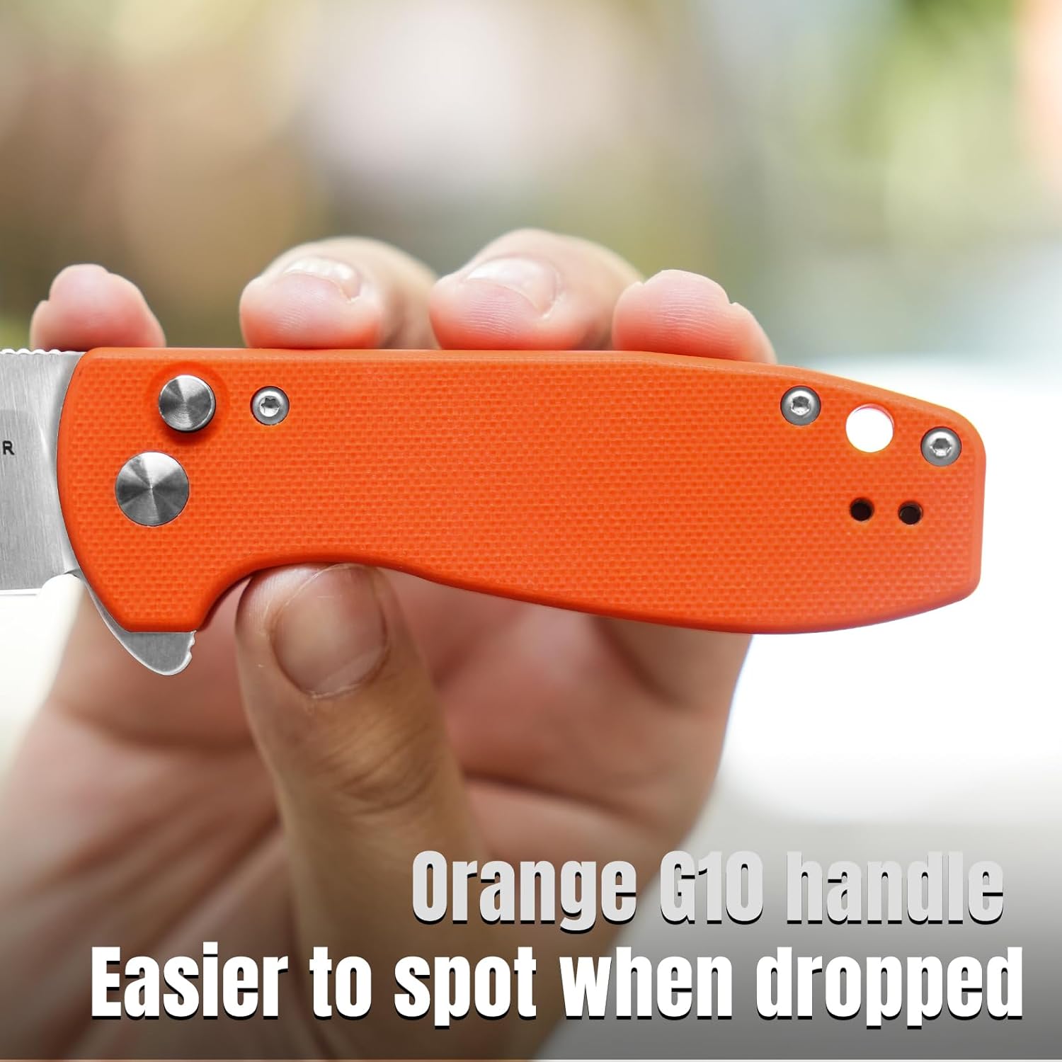 - Well-chamfered Handle Edge: Amicus edc pocket knife features orange G10 handle which is easier to spot when dropped. Additionally, the small pocket folding knife provides a well-chamfered handle edge, enhancing excellent grip. Standable pommel handle design offers a fun way to storage and display.