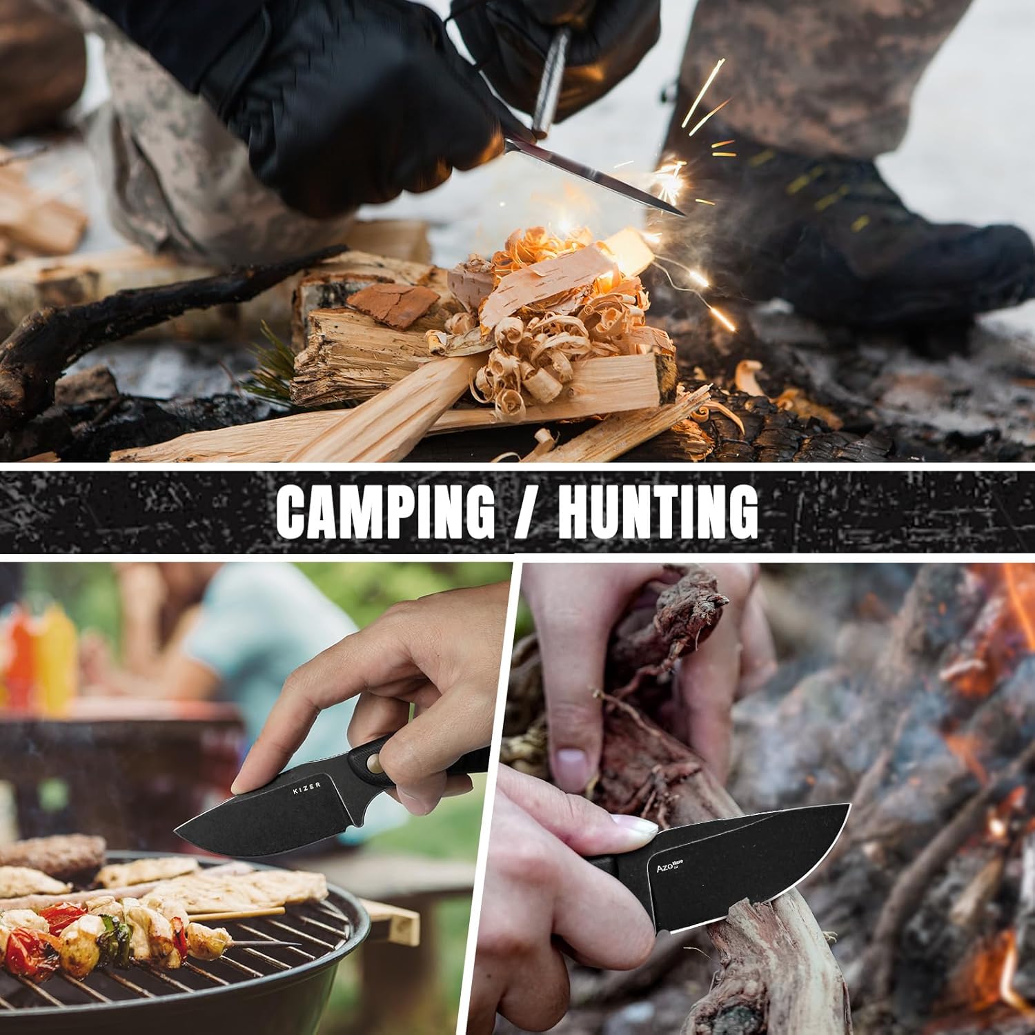 - Practical Small Camping Fixed Blade Knife: This versatile edc bushcraft survival knife is designed to tackle the challenges of daily life and outdoor activities, making it ideal for hunters, campers, wildlife enthusiasts, tradespeople, and everyday carry; It performs well in rough conditions and harsh environments, serving as the perfect supplementary tool for camping, hiking, fishing, and other outdoor pursuits