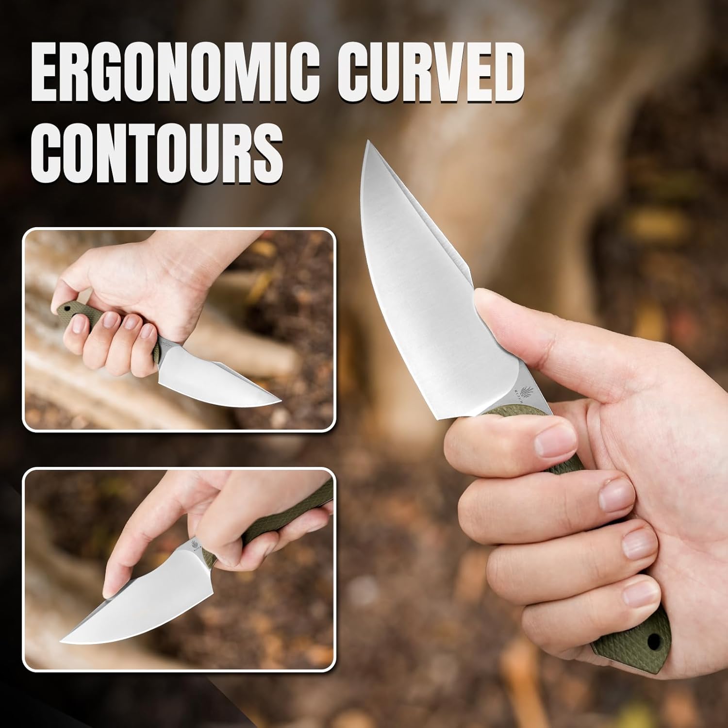 - Excellent Grip & Ergonomics: Meticulous attention to detail is evident in the texture design on the handle, which offers excellent grip and tactile feedback. The back of the camping knife exhibits a subtle curvature that combines aesthetics with ergonomics, ensuring comfortable thumb placement during use and enhancing the overall user experience.