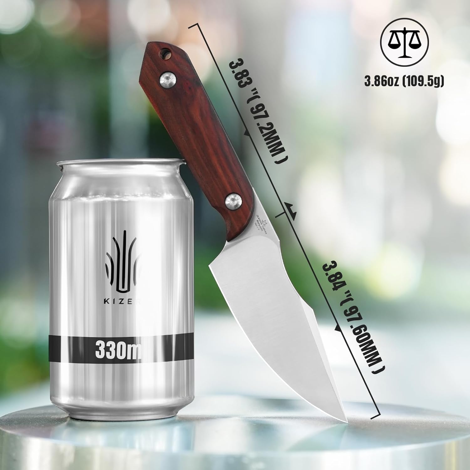 - Natural Red-sandalwood Handle: The fixed blade knife handle is made of red-sandalwood, featuring a lightweight and ergonomic design.