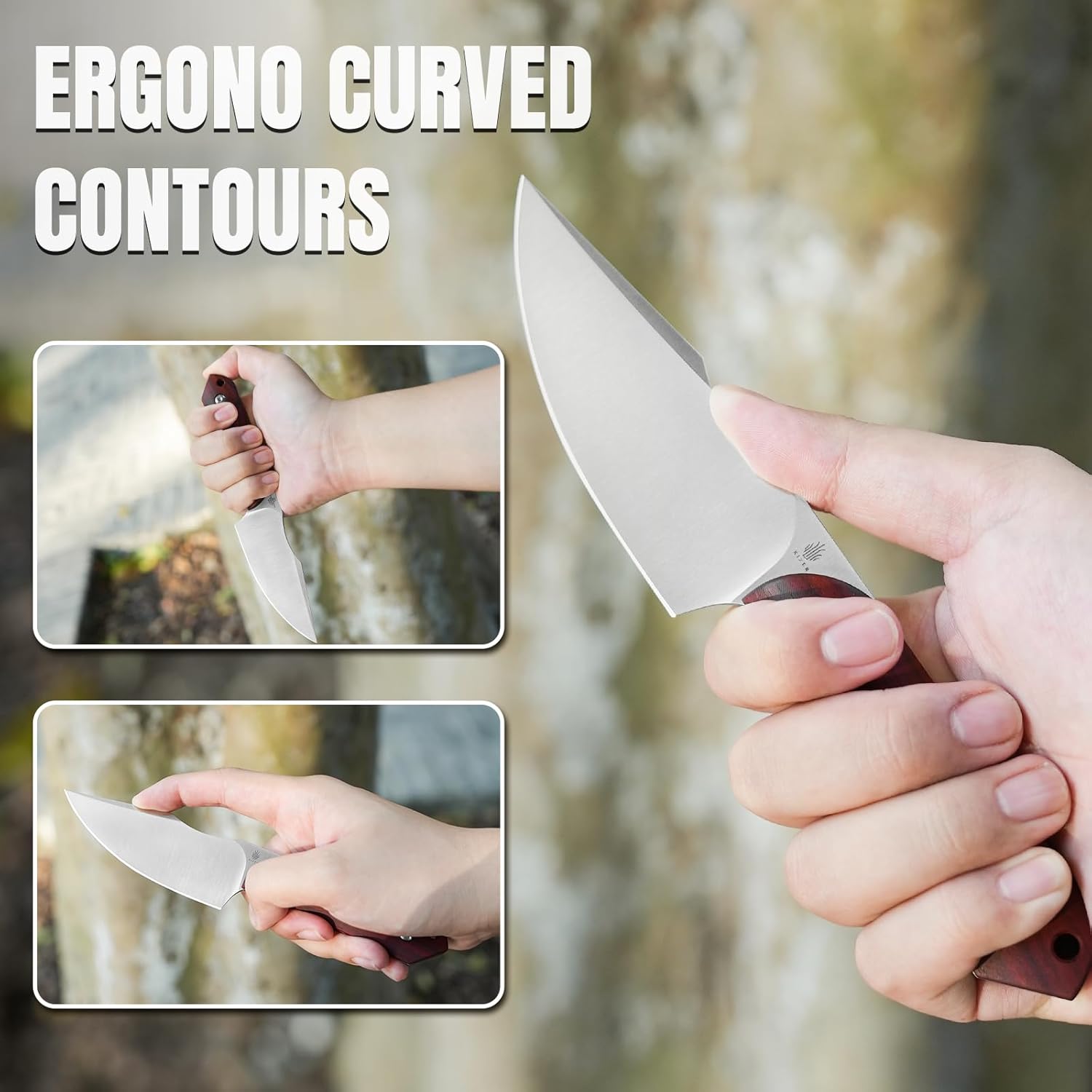 - Excellent Grip & Ergonomics: Nature red-sandalwood offers excellent grip and tactile feedback. The back of the camping knife exhibits a subtle curvature that combines aesthetics with ergonomics, ensuring comfortable thumb placement during use and enhancing the overall user experience.