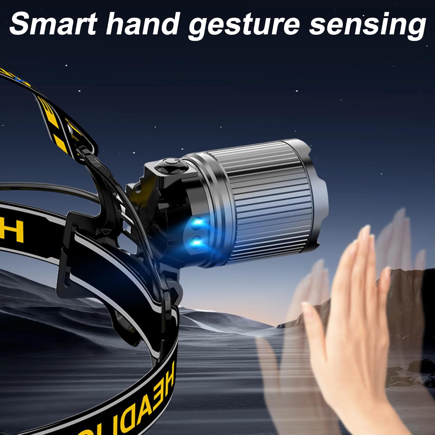 1200LM Headlamp Rechargeable, 3Modes Led HeadLamps, Lightweight, Waterproof & Smart Gesture-Sensing Headlight 90°Adjustable Zoom HeadLights for Forehead, Hardhat Headlamp for Outdoor Camping Hiking