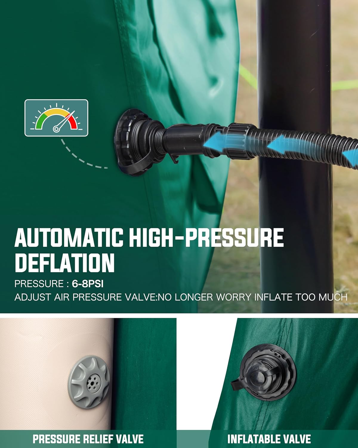 - 【EXCELLENT VENTILATION】The inflatable tent is equipped with 6 windows and 2 doors, it provides ample airflow to keep the interior cool and comfortable. Enjoy natural light and fresh air, making your outdoor experience even more enjoyable. The windows and doors also offer easy access in and out, adding convenience to your camping. Choose now for a comfortable camping adventure!