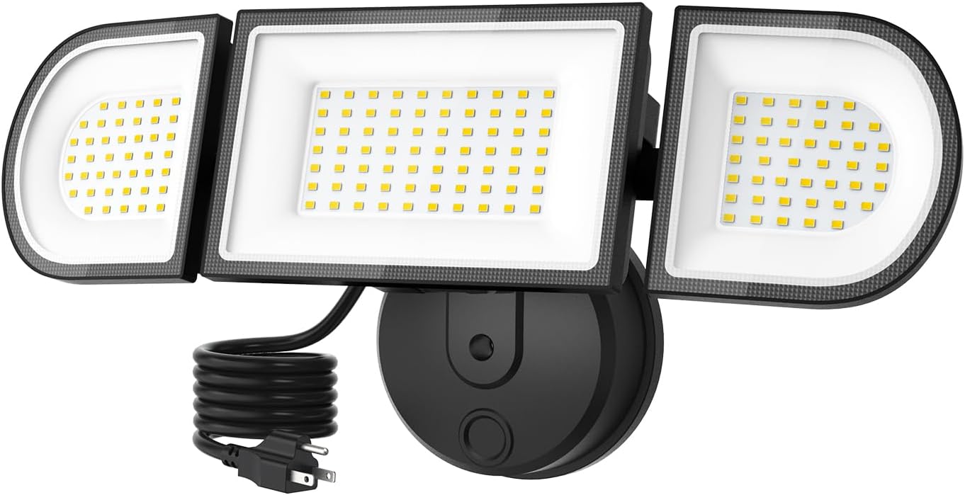 150W LED Flood Light Outdoor Plug in, Exterior Flood Lights with 3 Adjustable Heads, 15000LM Super Bright Security Lights Fixture, Outside Floodlights for House,Backyard,Garage