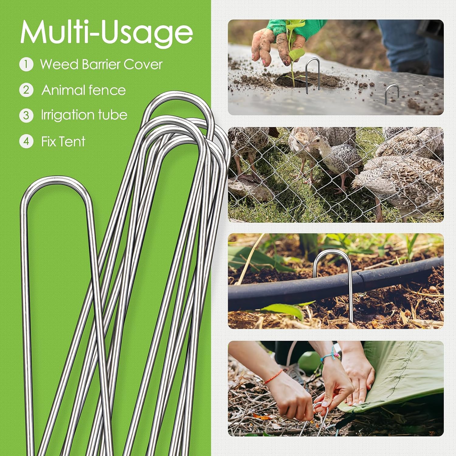 - Multi-purpose Metal Stakes: U-shaped tent stakes are ideal for fixing landscape fabrics, lawns, fences, weed barriers, tents, tarps, hoses, etc. They can also be used for Christmas decorations and Halloween light stakes