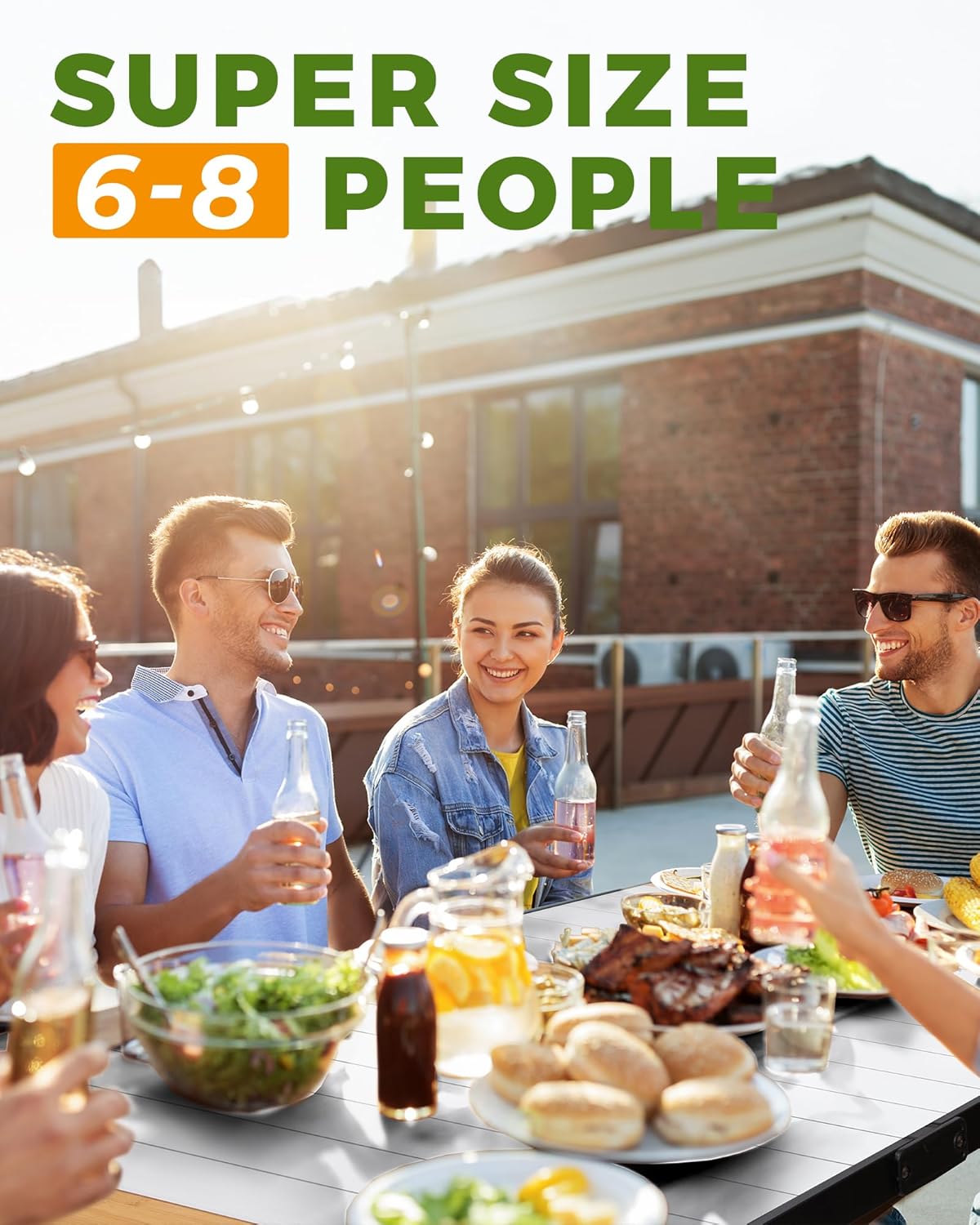- 【Spacious Tall Design】Designed with extra height and a large surface area, this table gives you more space for cooking, dining, or organizing your campsite. Whether you’re hosting a backyard BBQ or setting up a tailgate, there’s room for everyone - and everything.
