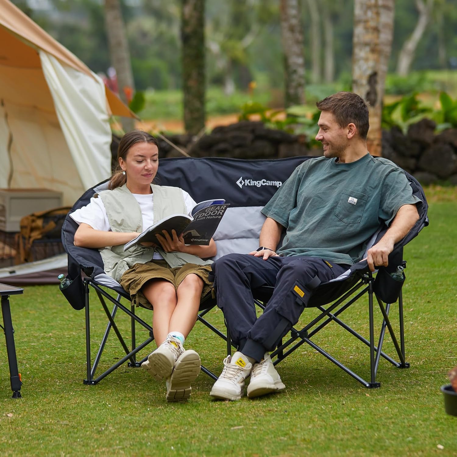 - 【Oversized Padded Comfort】Relax like never before with our oversized 2 person camping chair, designed to be 20% wider than standard loveseats. Featuring 400g/m² padding, this padded chair offers twice the cushioning of regular models, delivering a soft, cozy seating experience for two adults – perfect for long, lazy outdoor days.