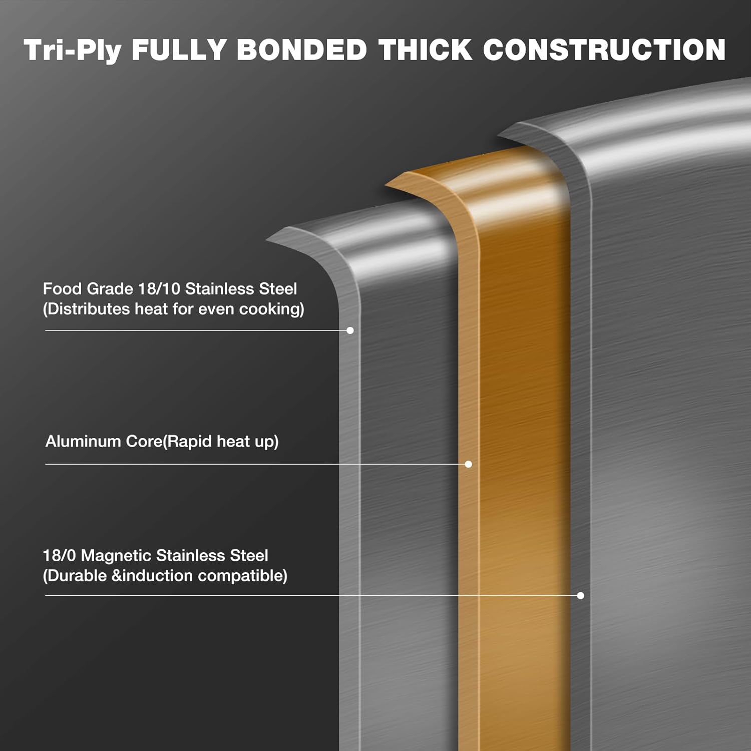 - 【Professional-Grade Construction】Stainless Steel Paella Pan with tri-ply clad layers ensures rapid, even heating for flawless paella and stir-fries
