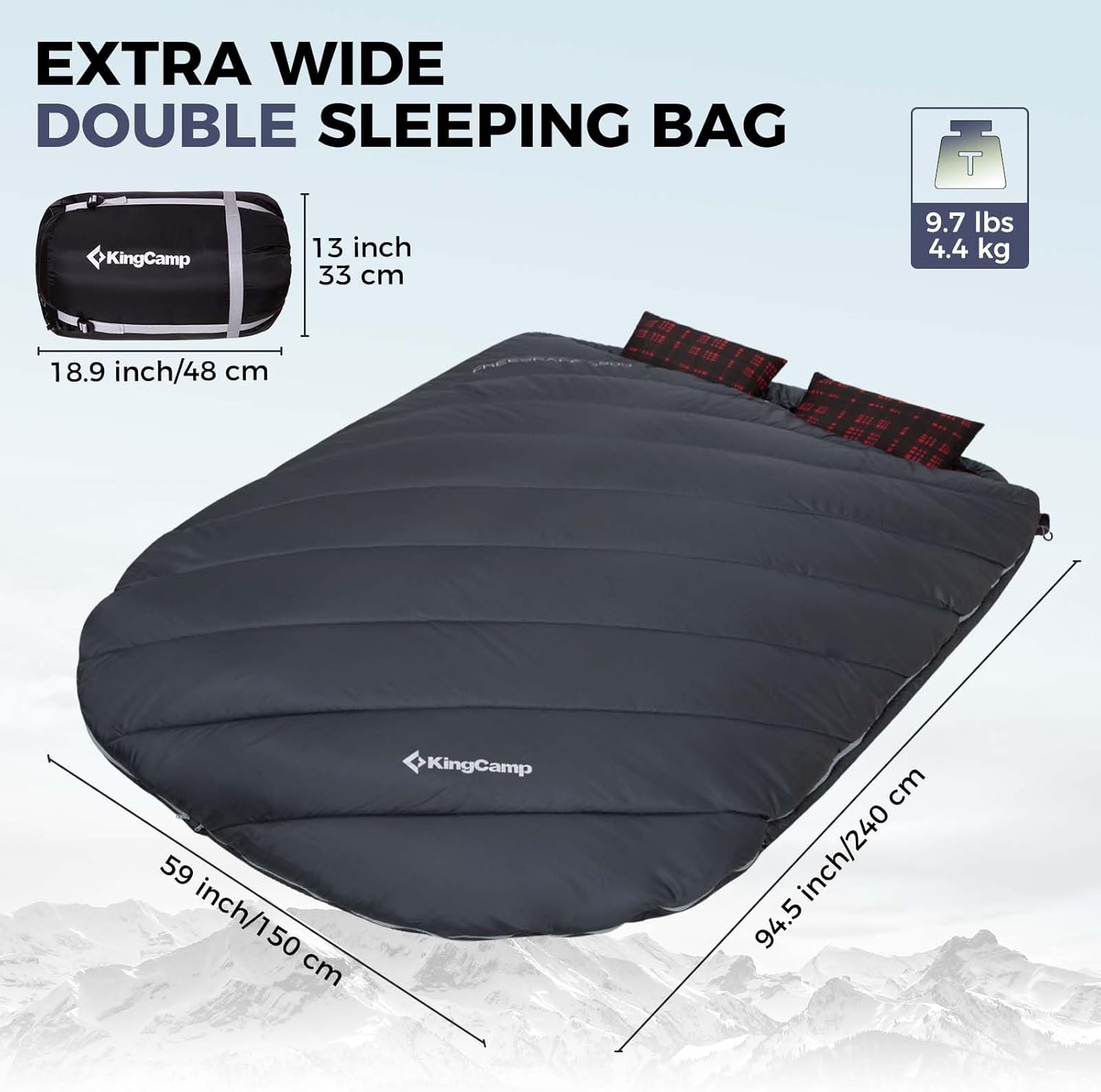 KingCamp Double Sleeping Bag for Adults, Queen Size 2 Person XXL Flannel Sleeping Bag, Waterproof Lightweight Flannel Quilt with 2 Pillows, Perfect for Couples Family Camping Hiking