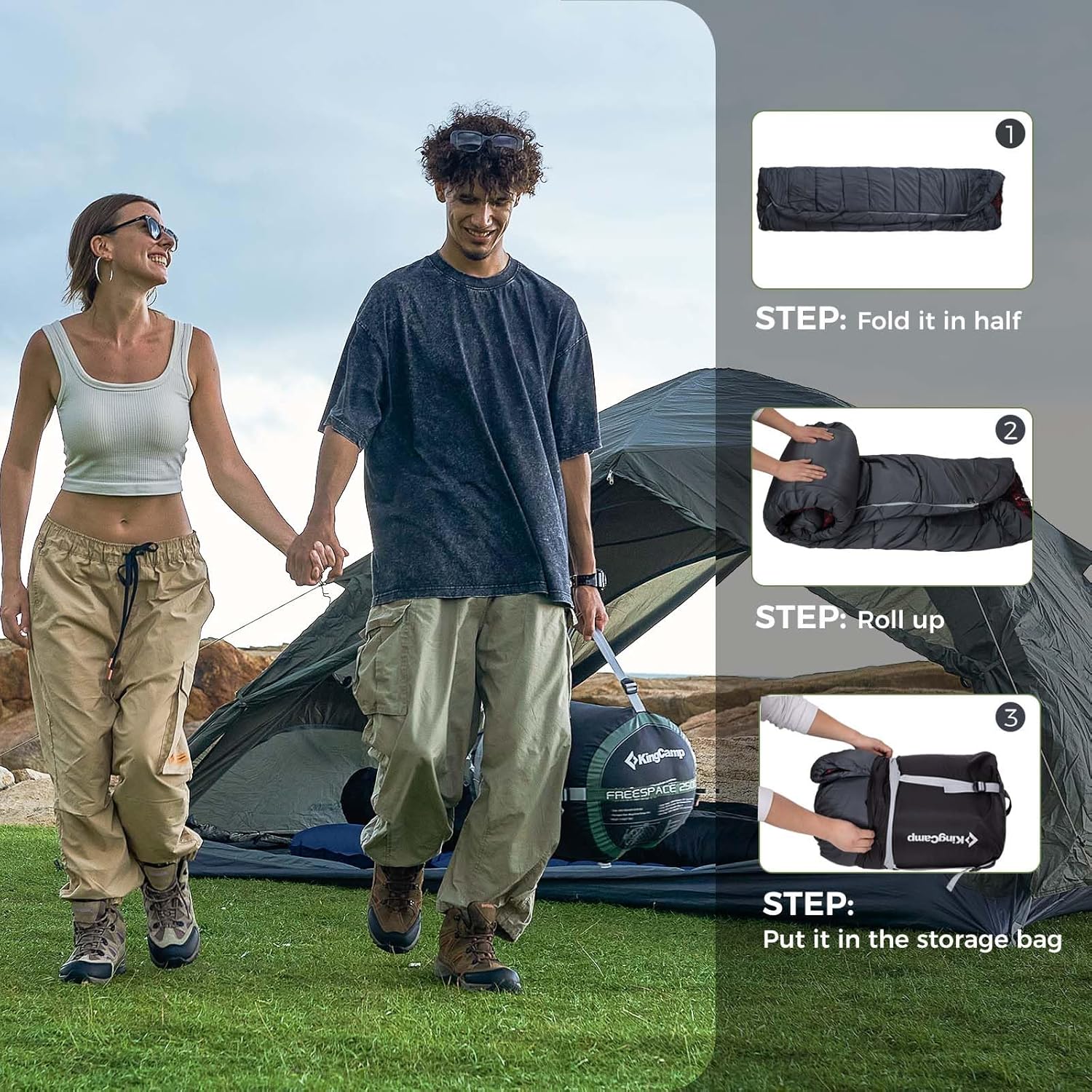 - THOUGHTFUL DESIGN FOR ENHANCED COMFORT: Featuring a secure zipper collar strap to prevent accidental unzipping, this two person sleeping bag ensures you stay warm and comfortable throughout the night. It also includes two matching pillows for added head support, offering extra convenience and comfort for a restful sleep. These thoughtful details make this sleeping bag perfect for families or couples seeking both comfort and practicality on their camping trips.