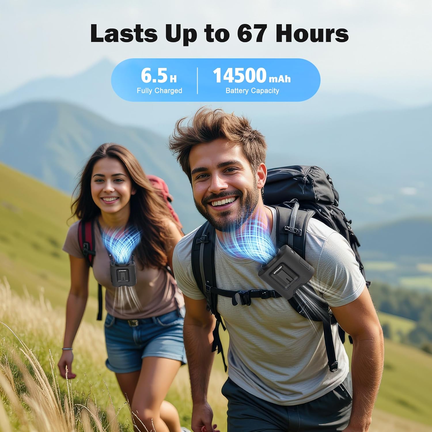 - Long-lasting Battery: The KITWLEMEN waist fan features a 14500mAh battery, providing up to 67 hours of continuous cooling on low speed, perfect for camping, hiking, and outdoor adventures to keep you cool