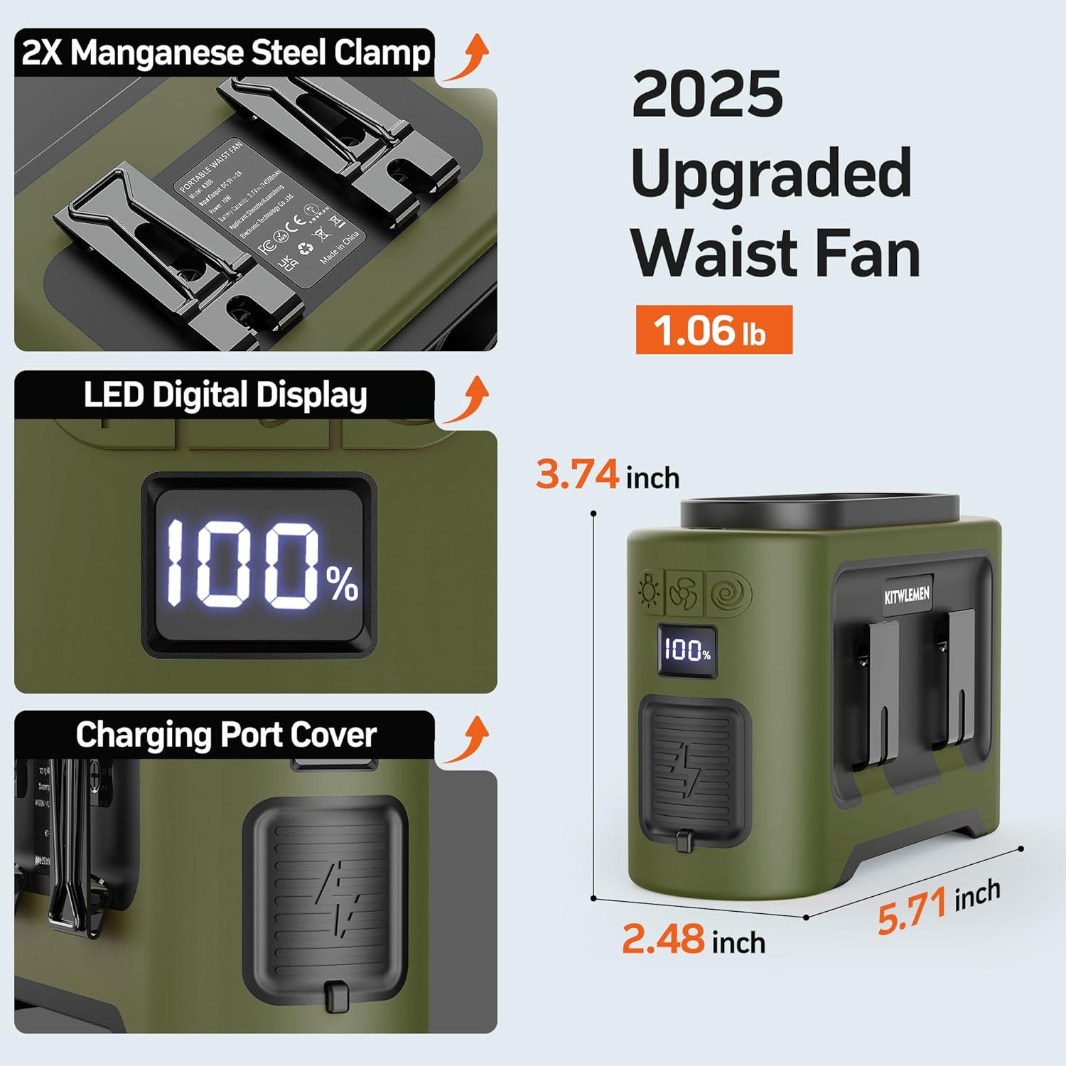 - Long-lasting Battery: The KITWLEMEN waist fan features a 14500mAh battery, providing up to 35 hours of continuous cooling on low speed, perfect for camping, hiking, and outdoor adventures to keep you cool