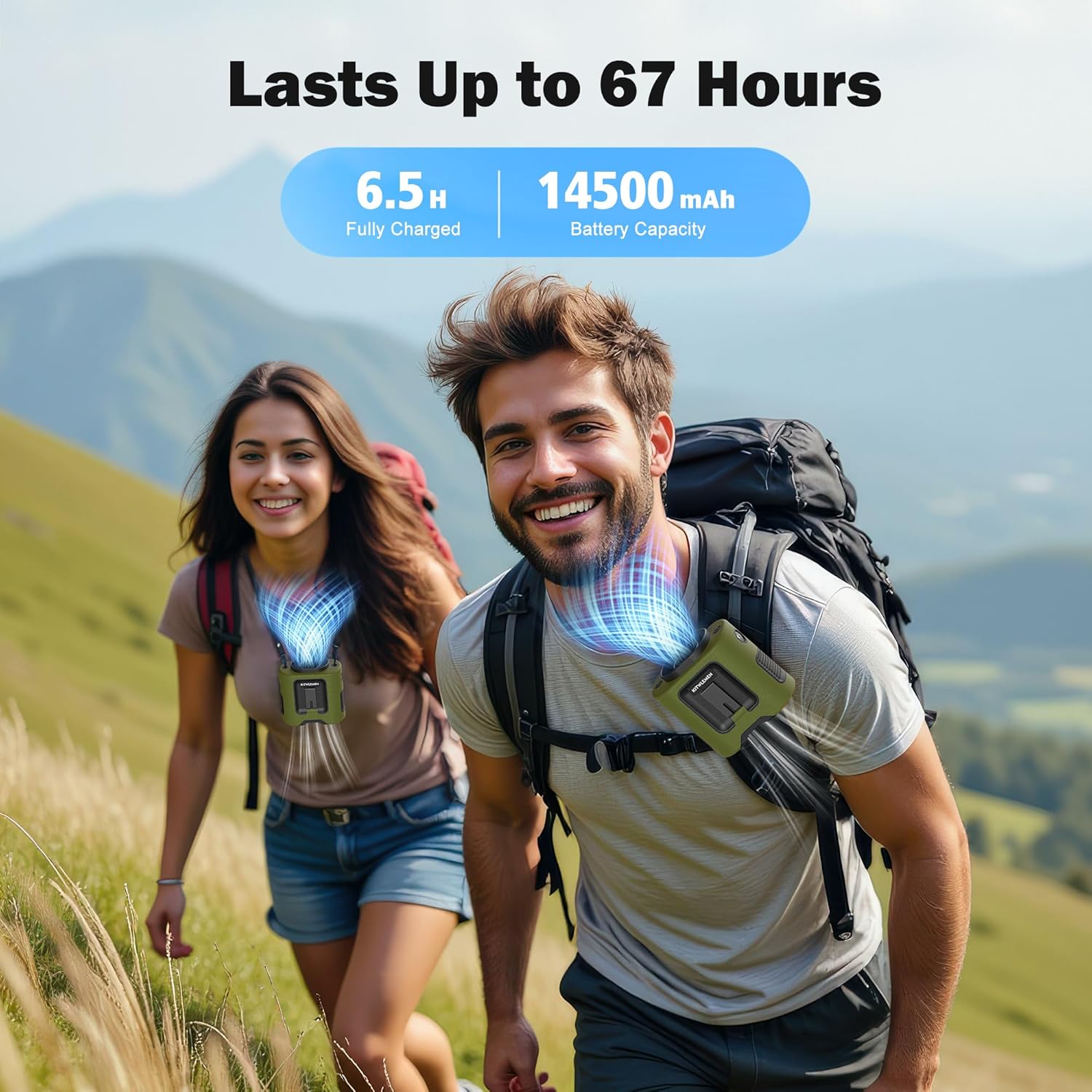 - Long-lasting Battery: The KITWLEMEN waist fan features a 14500mAh battery, providing up to 67 hours of continuous cooling on low speed, perfect for camping, hiking, and outdoor adventures to keep you cool