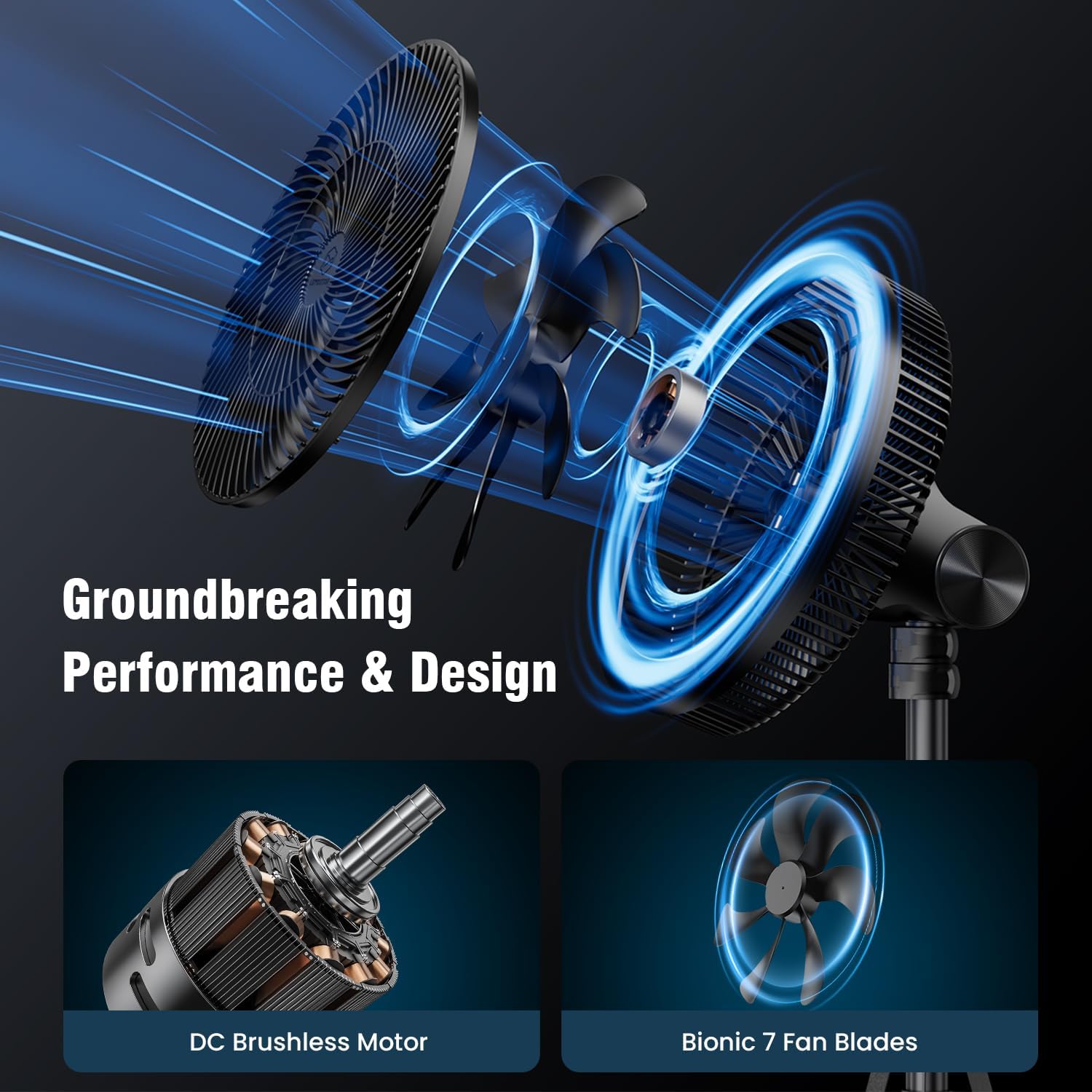 - Rechargeable Battery & Convenient to Charge: The pedestal fan built-in 16000mAh huge capacity rechargeable battery, lasts up 4 to 40 hrs depending on different speed(speed 1: about 40H, speed 2: about 11H, speed 3: about 7H, speed 4: about 4H) after a full charge(about 8H)(Note: Fan works only without oscillation). Portable fan comes with a 3A fast charging long cable(4.92ft). The rechargeable design is convenient for outdoor use, without sockets, and the DC plug design is convenient for indoor use, energy-saving and efficient