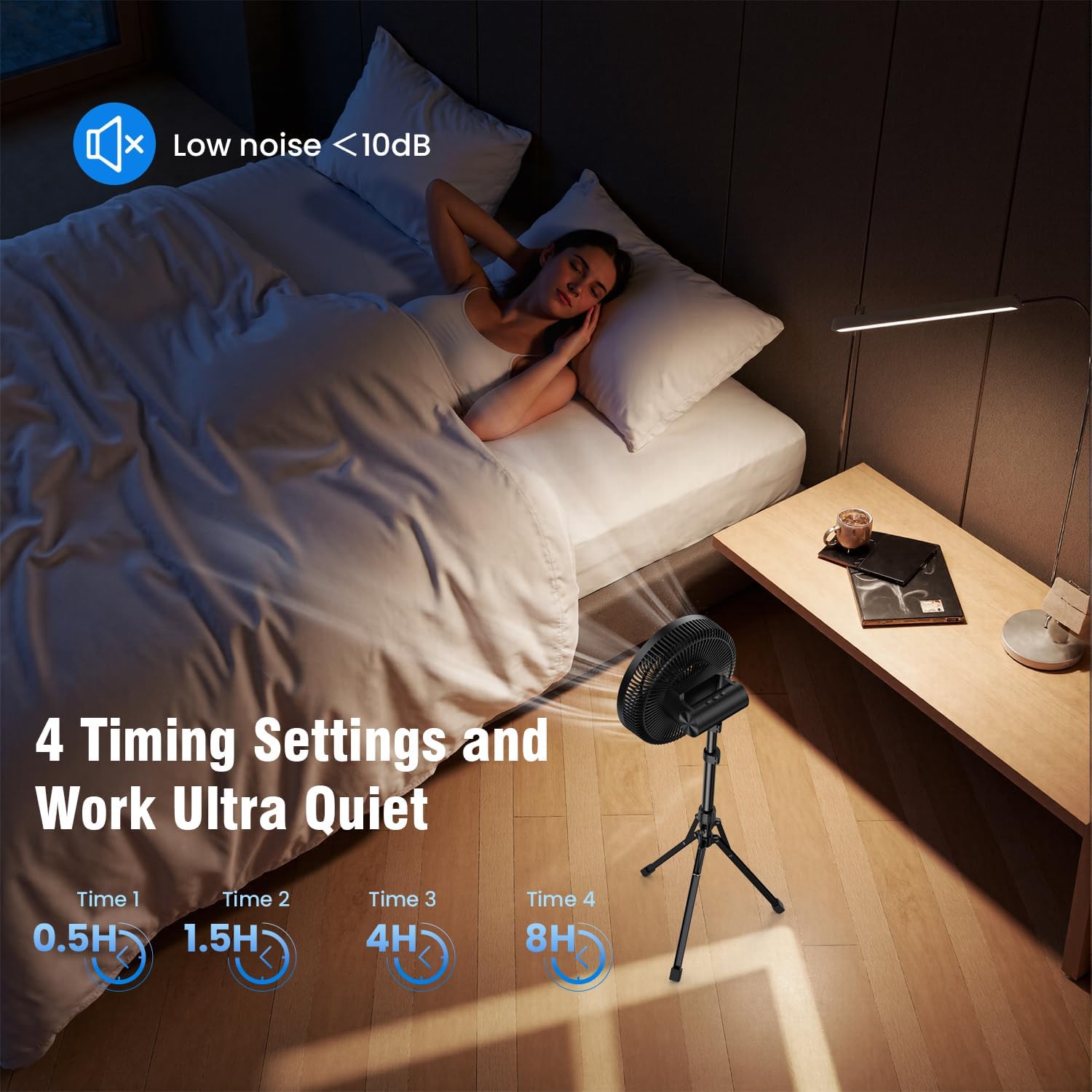 - 4 Speed and 4 Timer: Low-mid-high-super high 4 airflow can be adjusted, generate comfortable soft wind to strong wind, ensures to meet the different need in various environments. 0.5/1.5/4/8 hour timer setting combined with upgraded DC motor and bionic 7 fan blade technology, it circulates the air quickly throughout the room and works ultra quiet. This makes the personal fan quite suitable for your bedroom at night use