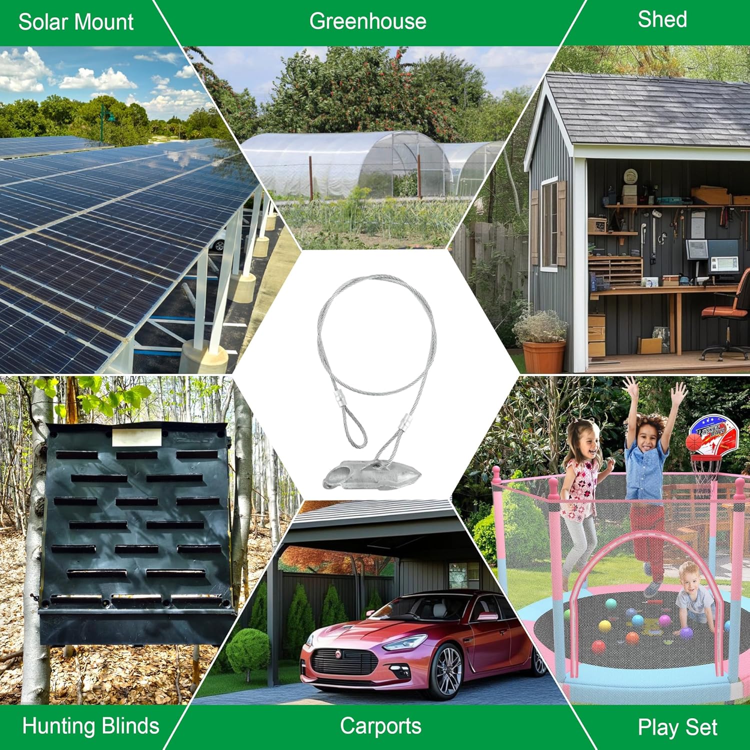 - 【Widely Application】 The universal design of the ground anchor allows it to be applied to a wide range of objects and soil types. Easy hook anchor can prevent the theft or unwanted movement of outdoor items, such as Fence, Greenhouse, Carports, Gazebo, Tent, Swing Set, Playset, Shed, trapping, Mobile Home.