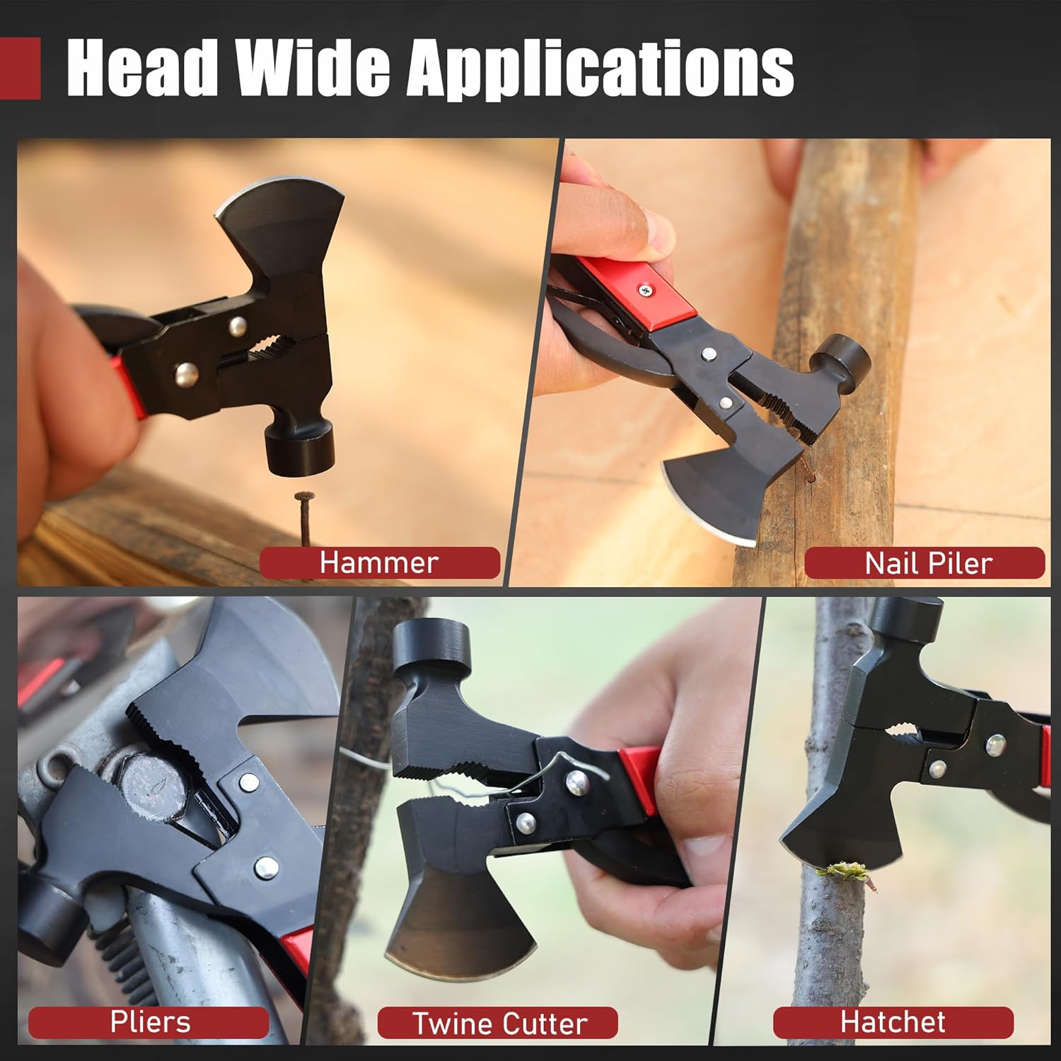 - 14-in-1 Multitool: Includs hammer, axe, pliers, wire cutter, screwdrivers, saw, wrench, bottle opener, fish scaler, nail file, and safety lock, great for camping, hiking, and other outdoor activities