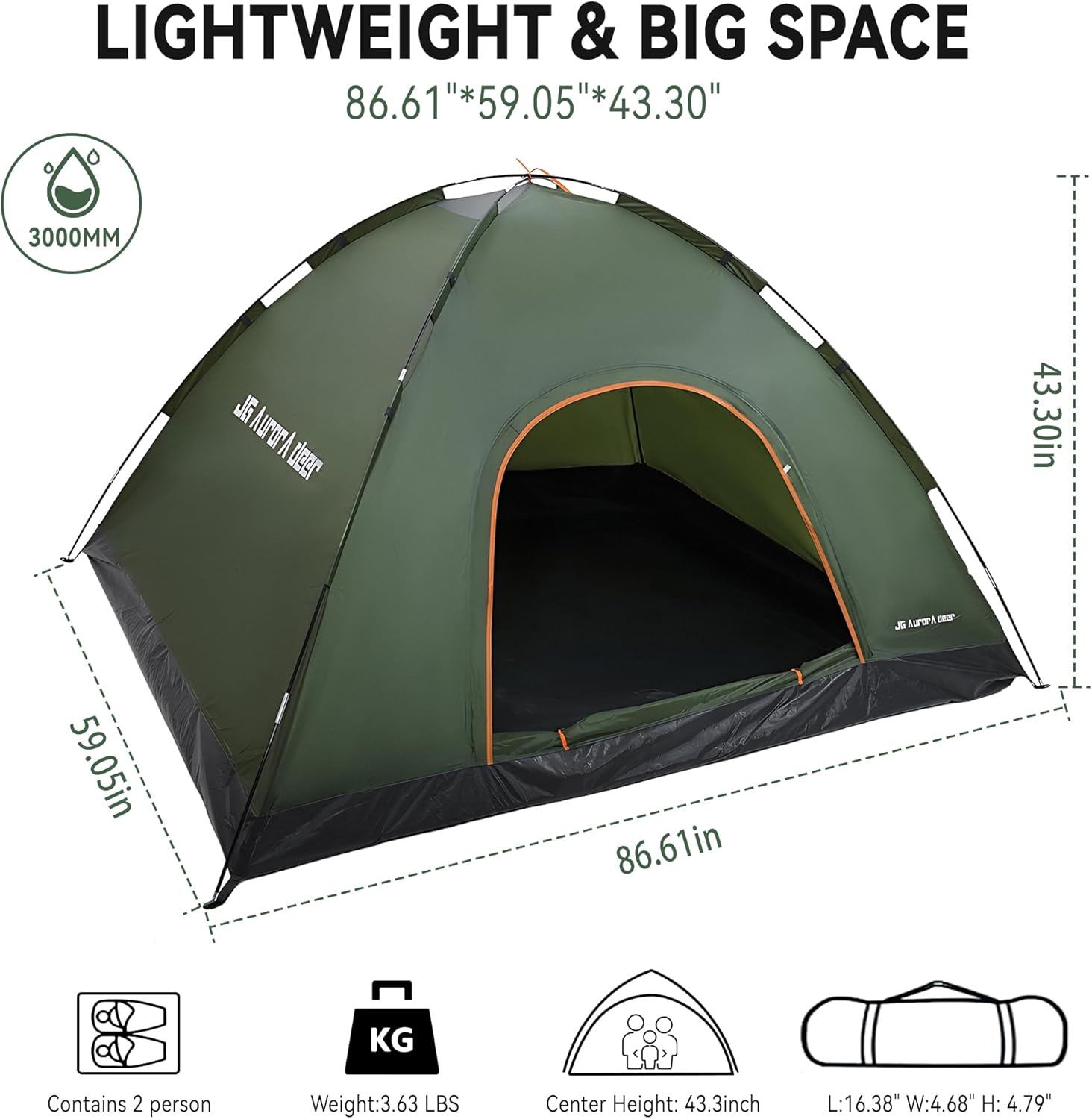 - Ultralight & Compact Portable & Lightweight 2-Person Tent: The backpacking tent is only 3.63 lb, Size:86.61*59.05*43.30 inches, Ideal tent for camping, backpacking, hiking, beaching, fishing, and weekend music festivals