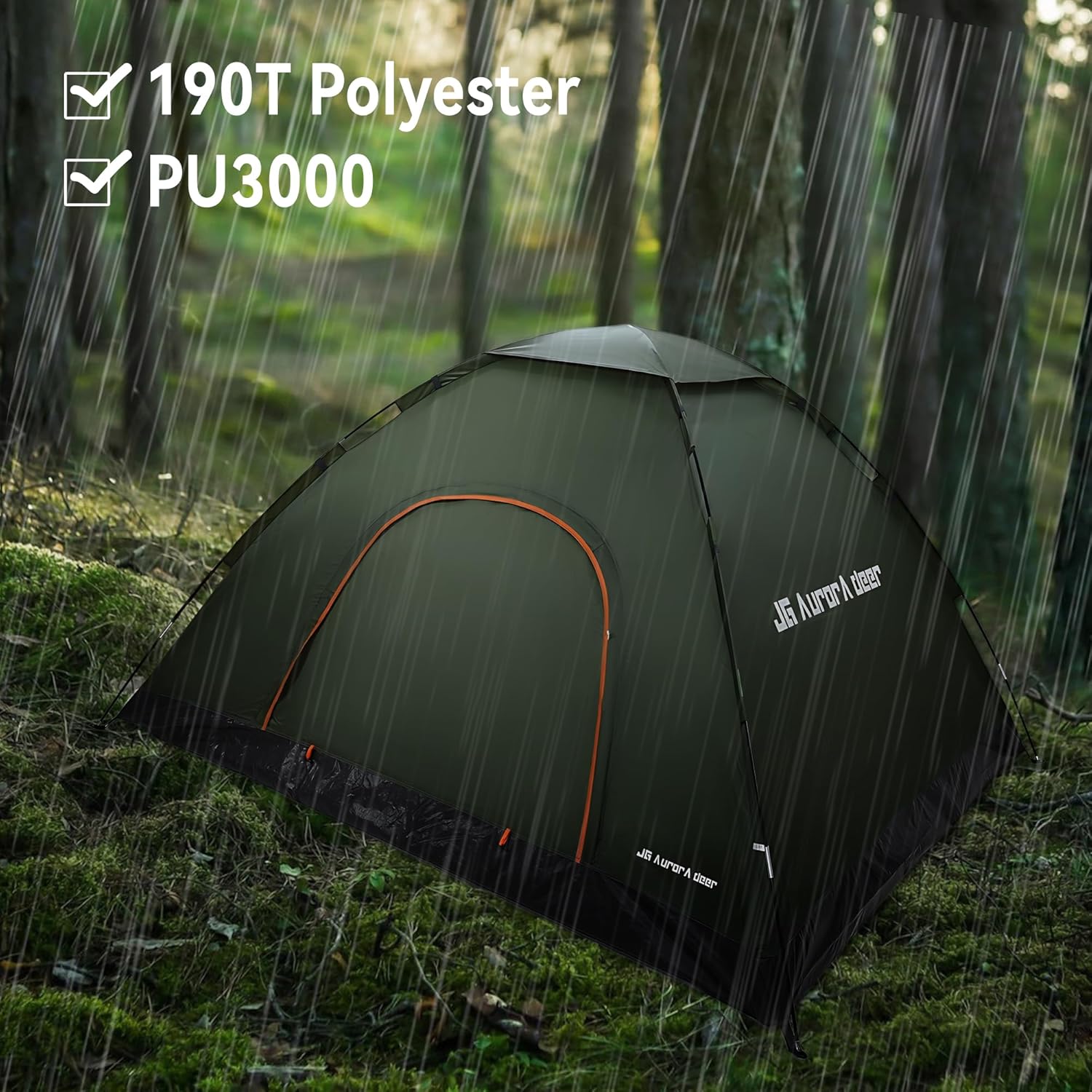 - Stormproof Performance : Made of 190T polyester with a PU 2000mm waterproof coating and heat-sealed seams Reinforced fiberglass poles, combined with 8 tent stakes, can withstand winds of 35 miles per hour.
