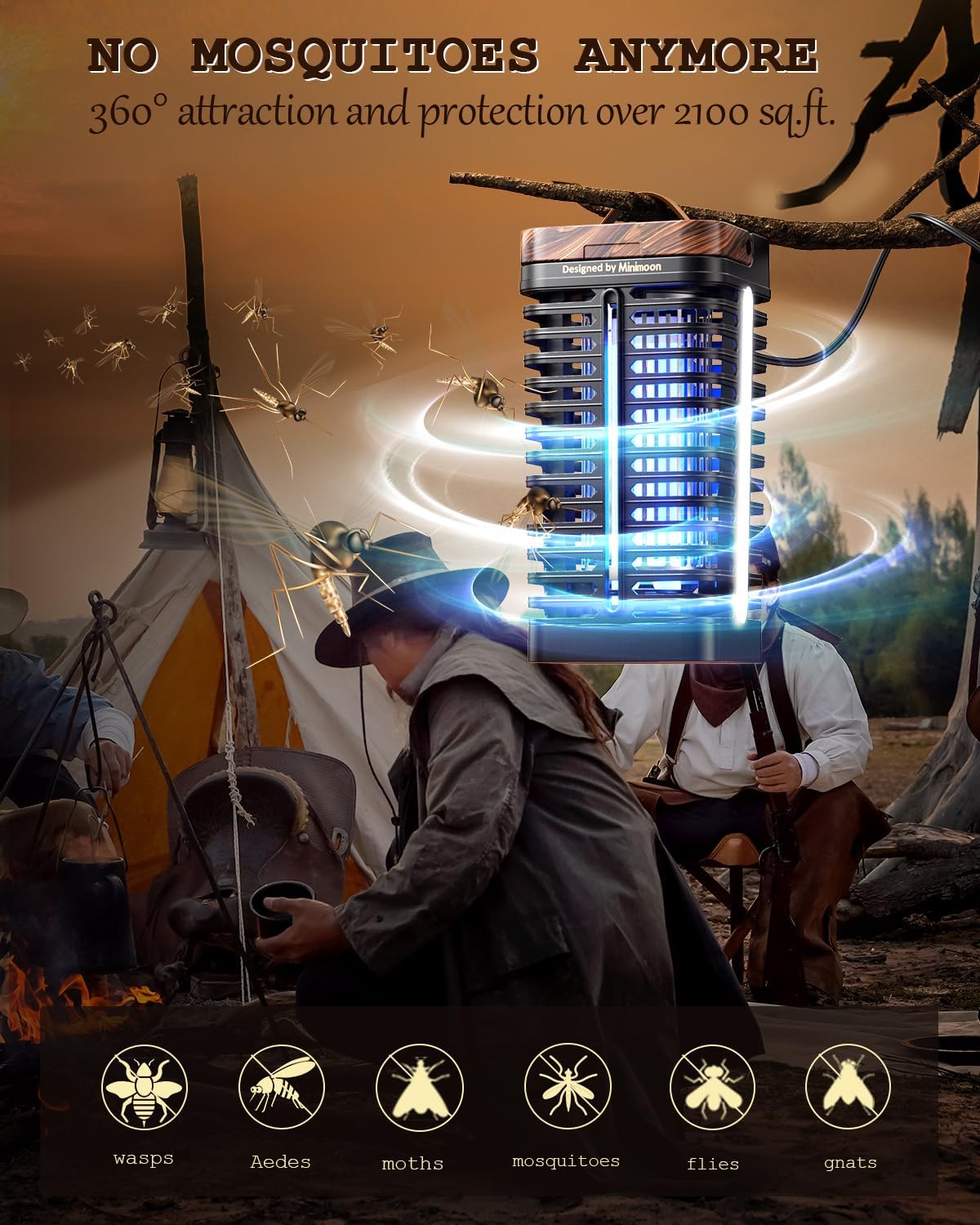 Minimoon Bug Zapper Outdoor with Dual LED Lights, 15W Mosquito Zapper 4200V Electric Fly Trap, Western Theme, IPX4 Waterproof, 5.9 Ft Cord, Fly Zapper for Backyard, Patio, Indoor