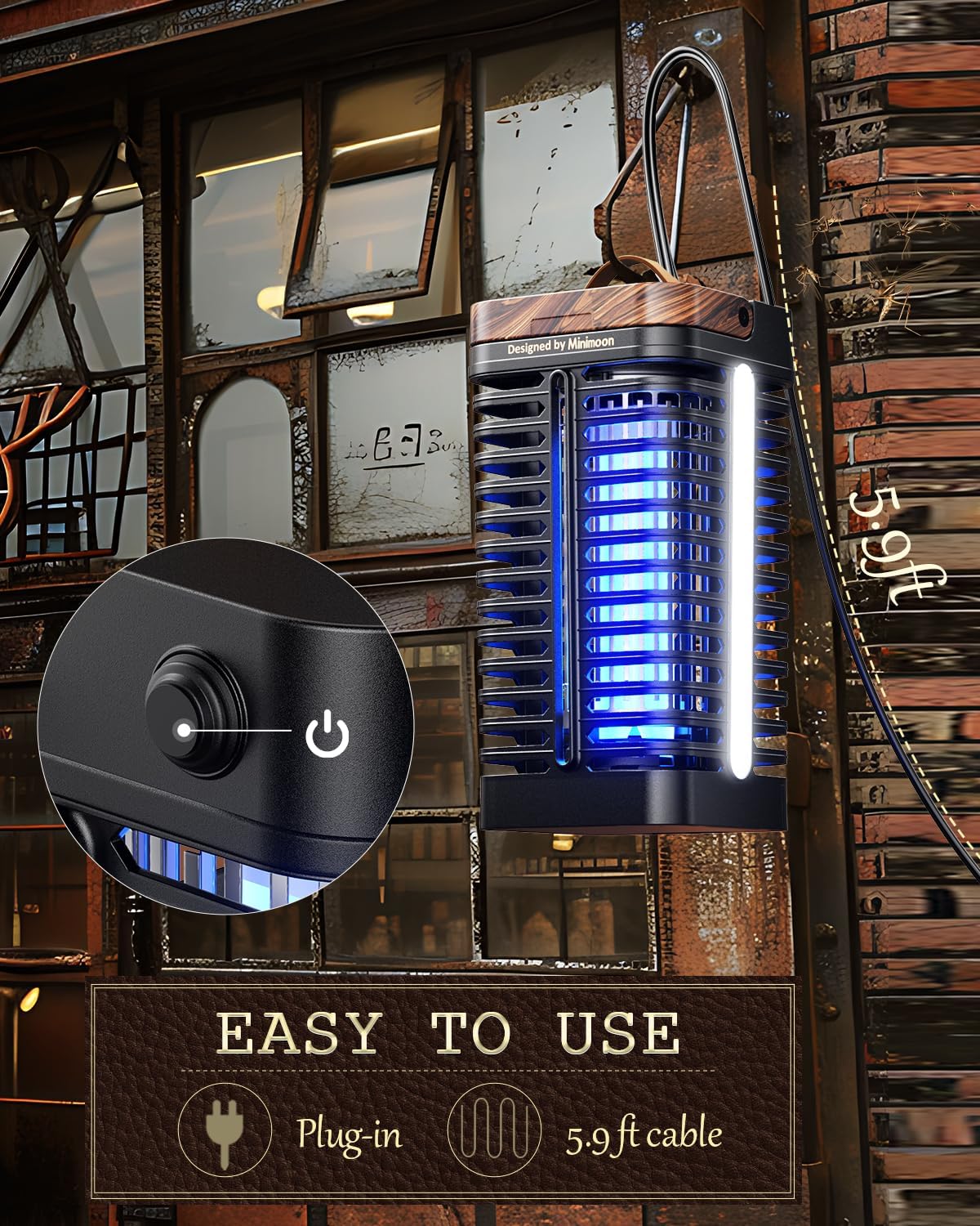 - 【Portable Design for Outdoor Use】Equipped with both hanging hook and carrying handles, along with a 5.9-foot power cord, this mosquito lamp offers flexibility for any setting. Perfect for backyards, garages, farms, orchards and more