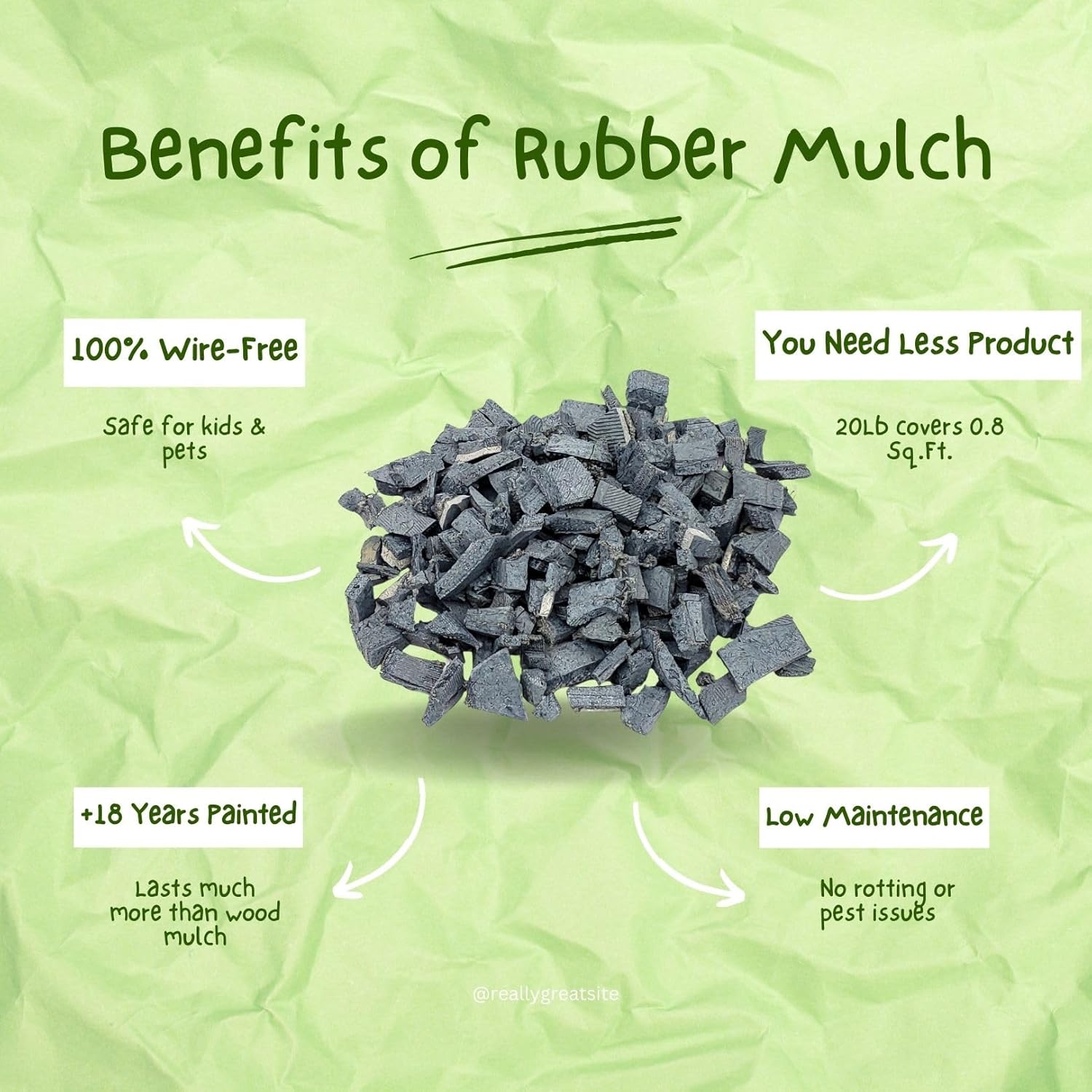 - Eco-Friendly Landscaping Solution Made from 100% recycled rubber, this mulch helps reduce landfill waste and supports a circular economy. A sustainable alternative to traditional wood mulch.