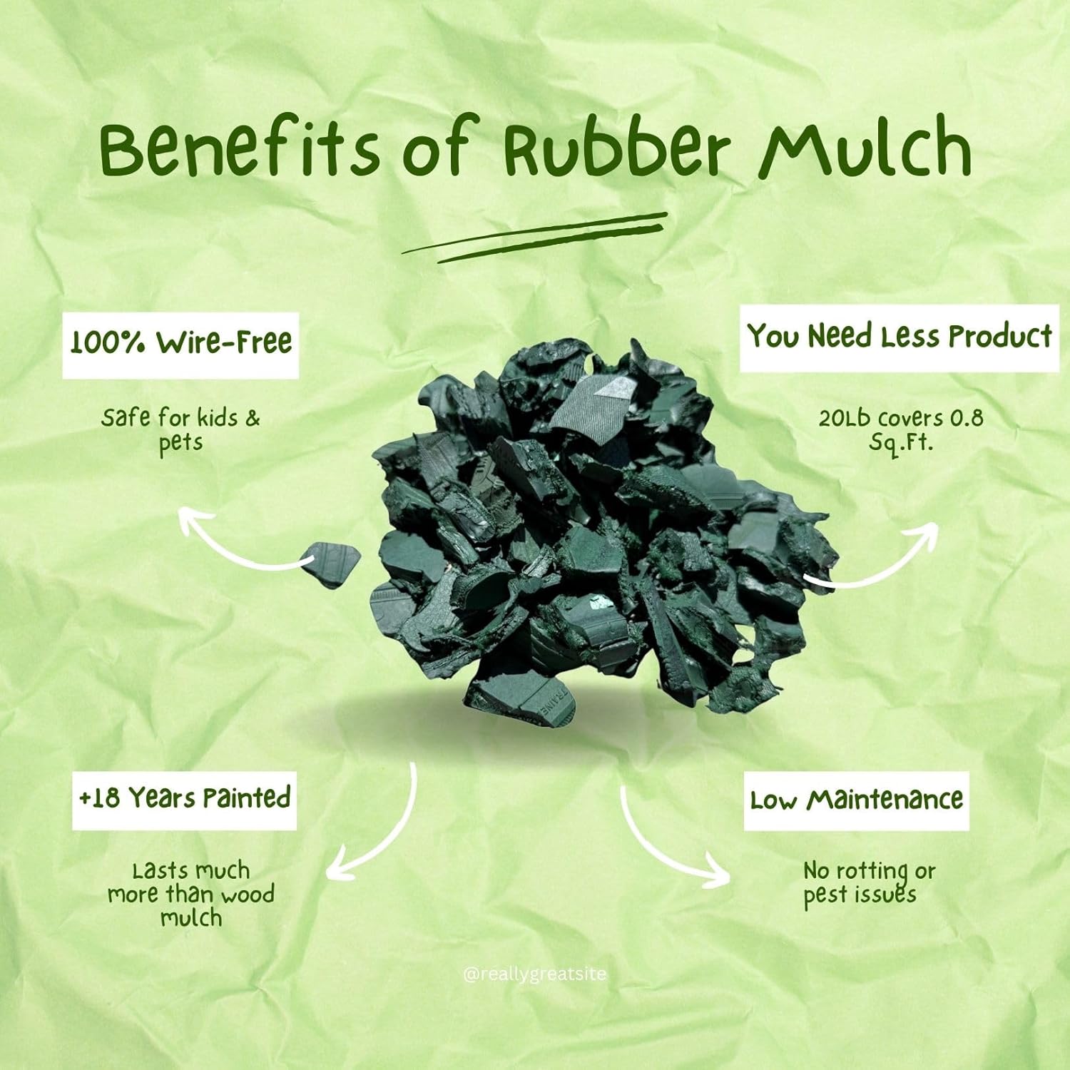 100% Wire-Free Rubber Mulch – Green, 20 lb (0.8 cu ft) | Long-Lasting, Low Maintenance, Safe for Kids & Pets – Landscaping & Playground Ground Cover