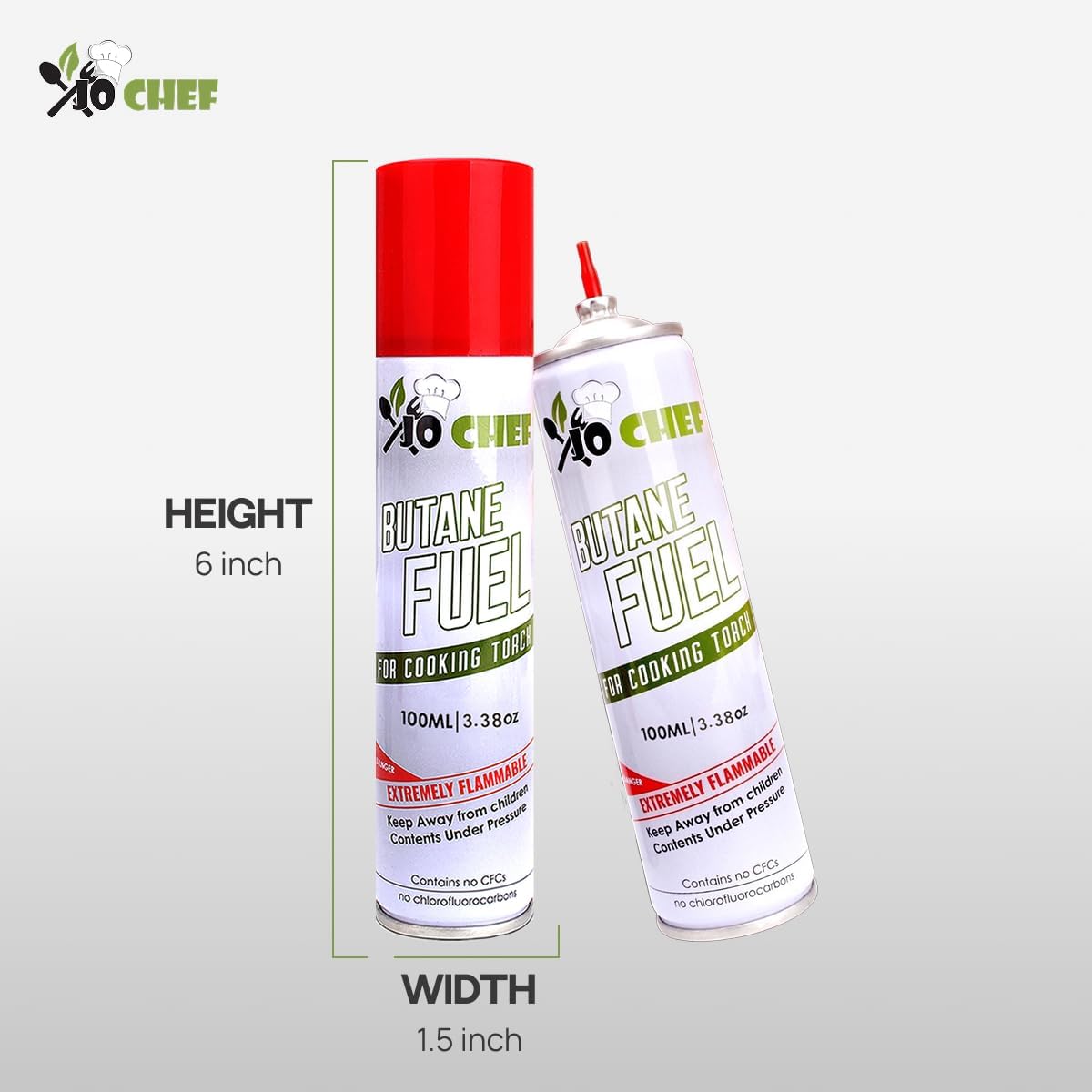 Jo Chef Butane Refill, Butane Torch Fuel Refill, Gas Lighter Fluid Refill Canister, Kitchen Blow Torch Fluid – Universal Tip – 2 Cans (3.38oz)