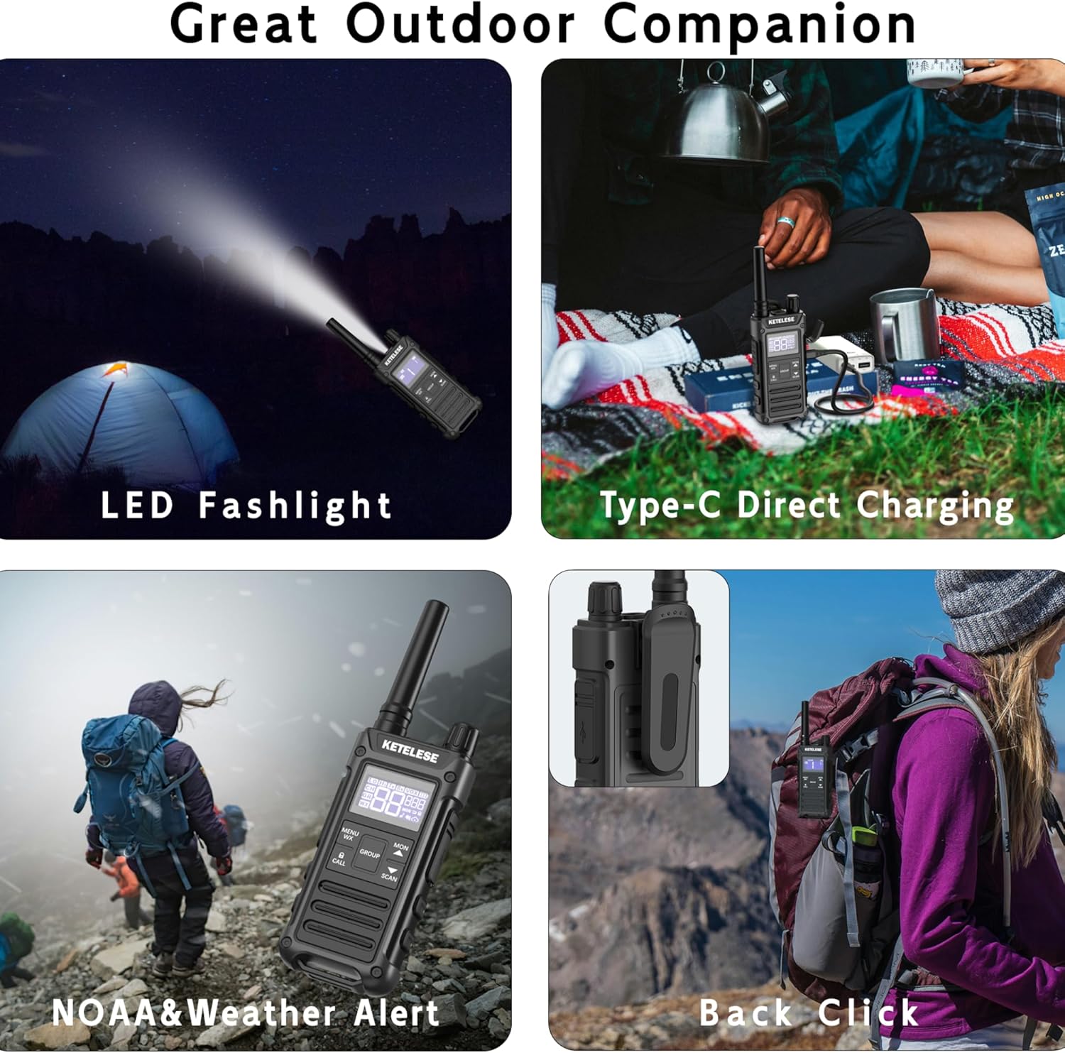 - 【Diversified Features and User-Friendly Design】Palm size; Light weight; Push to talk (PTT) button; 10 call tone settings; Keypad lock; LCD screen with backlight, Belt clip with lanyard hole; Convenient Type-C charging interface.