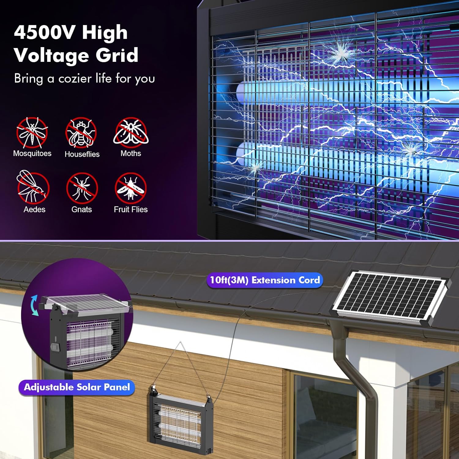okk Solar Bug Zapper Outdoor, 4500V Mosquito Zapper Outdoor Fly Killer with 10W Adjustable Solar Penal, Waterproof, Rechargeable, Portable Electric Fly Trap for Patio, Garden, Backyard, and Camping