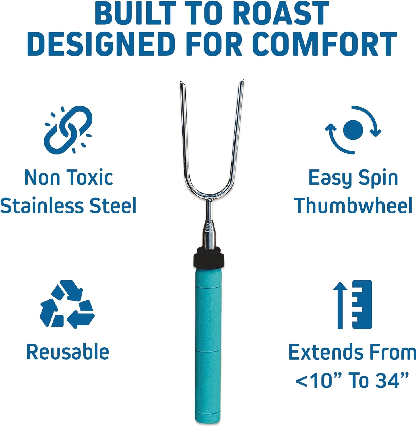 - SAFE & FAMILY-FRIENDLY: Designed with food-contact grade stainless steel and protective rubber caps, these smore sticks are safe for kids and adults alike. Enjoy worry-free campfires, whether at the fire pit, backyard, or campground.